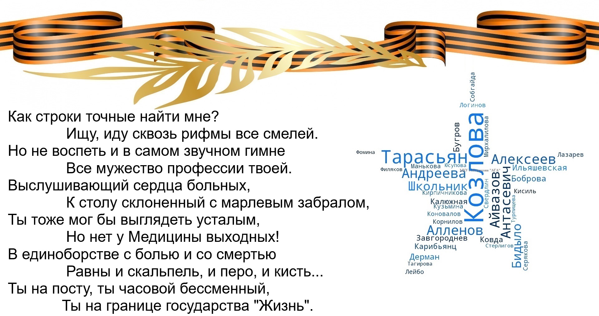 Сегодня мы с гордостью вспоминаем имена медиков, которые ковали победу на фронтах Великой Отечественной войны и достойно выполняли профессиональный долг в послевоенные годы.