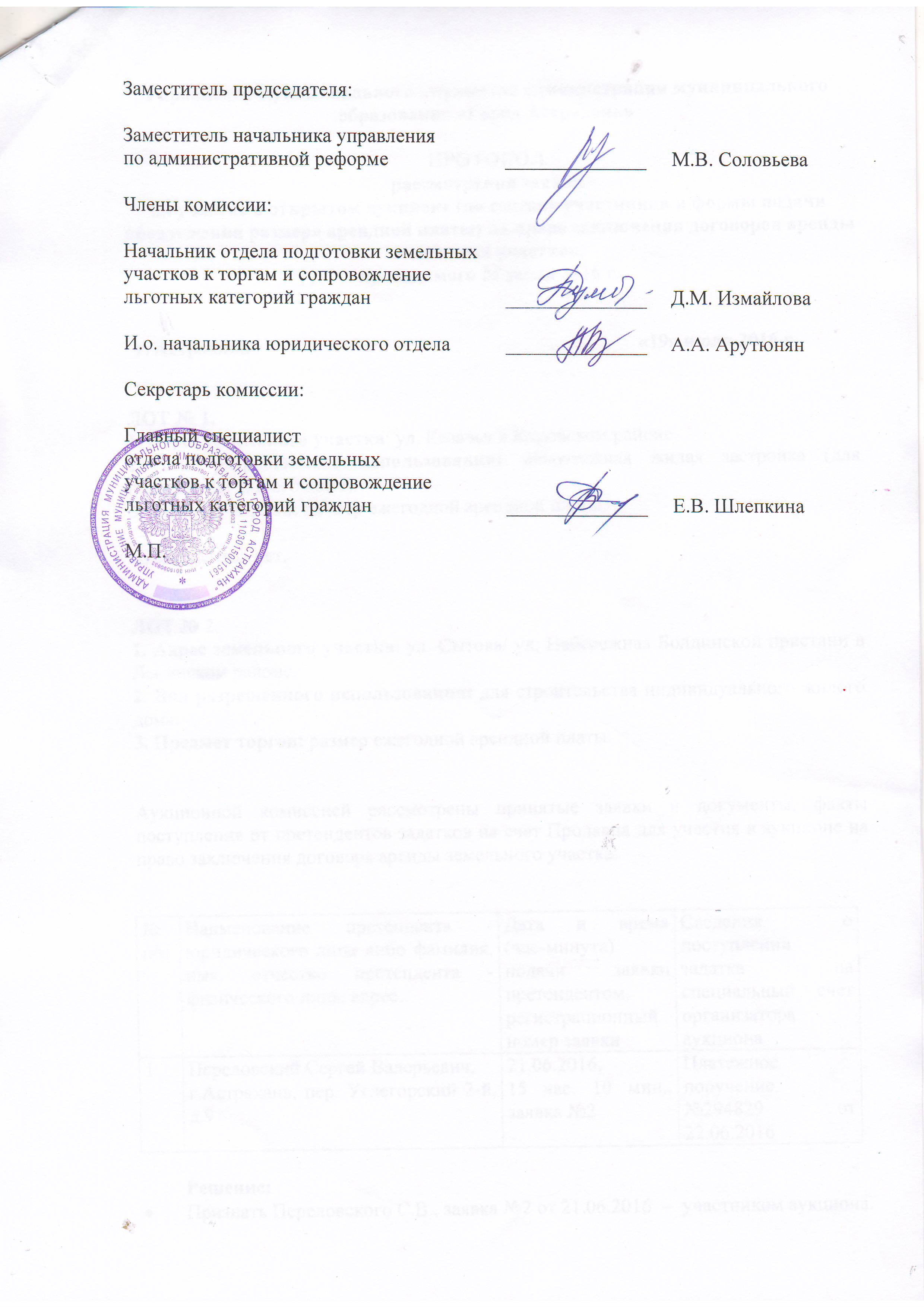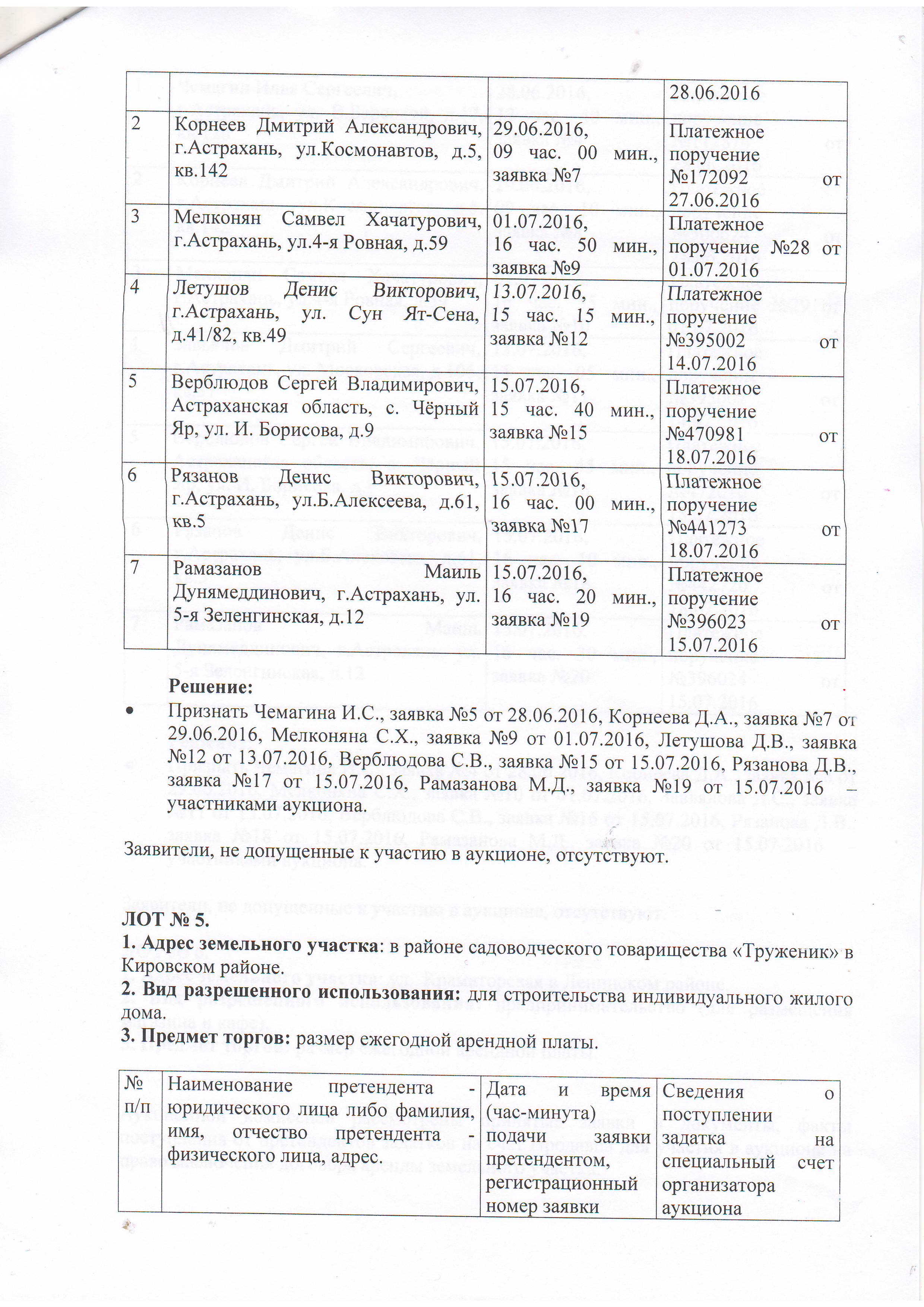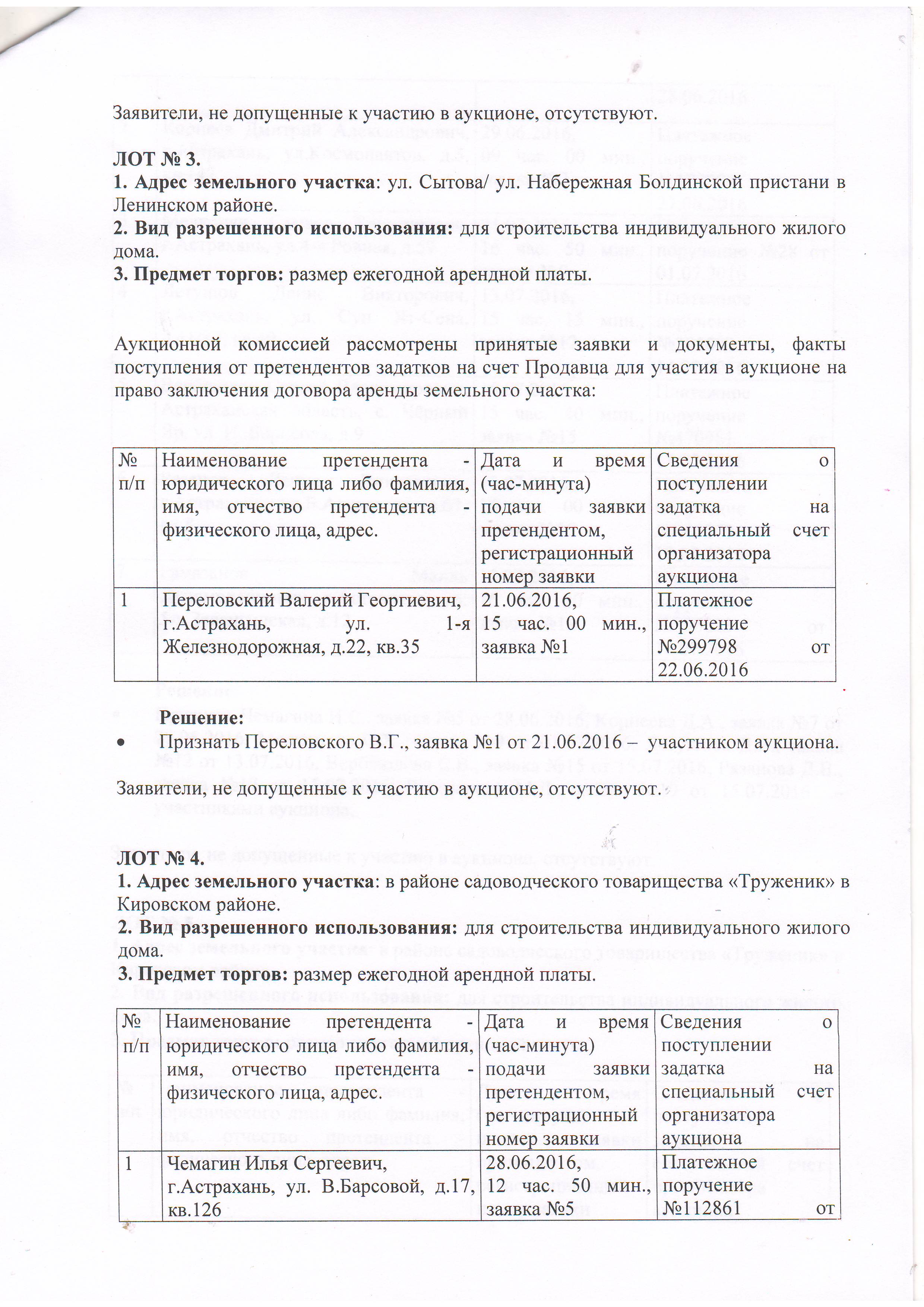 Протокол рассмотрения заявок аукцион 21.07.2016