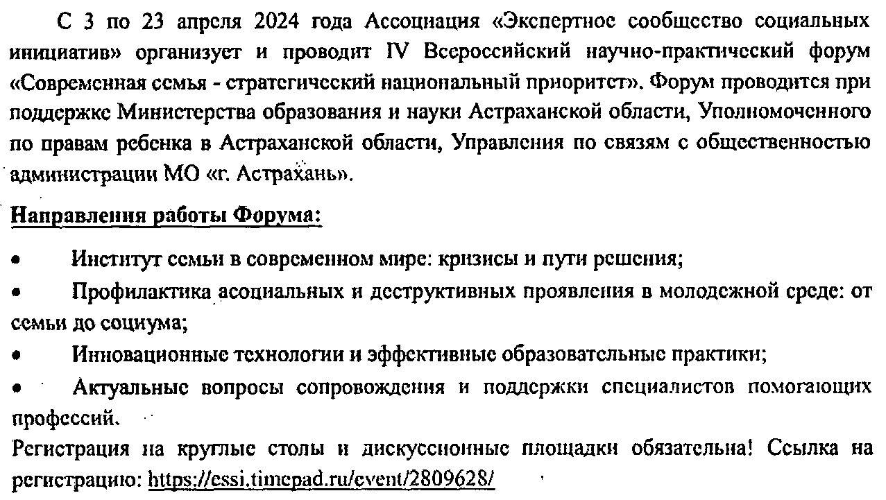Анонс пятого Всероссийского научно-практического форума «Современная семья-стратегический нацпроект»