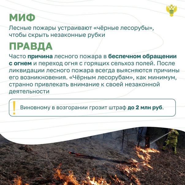 В 2026 году с 15 марта по 30 сентября в России пройдет Федеральная информационная противопожарная кампания «Останови огонь!». Она направлена на снижение риска возникновения лесных пожаров. Ежегодно порядка 70 % всех лесных пожаров происходит по вине человека.
