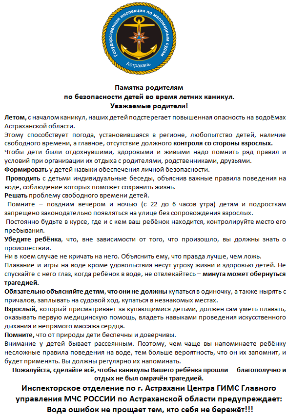 по безопасности детей в летний (отпускной) период