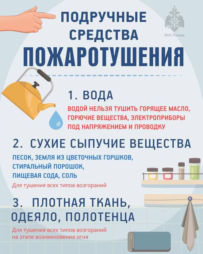 · имейте дома и во дворе первичные средства пожаротушения: огнетушитель, емкость с водой, ведро;