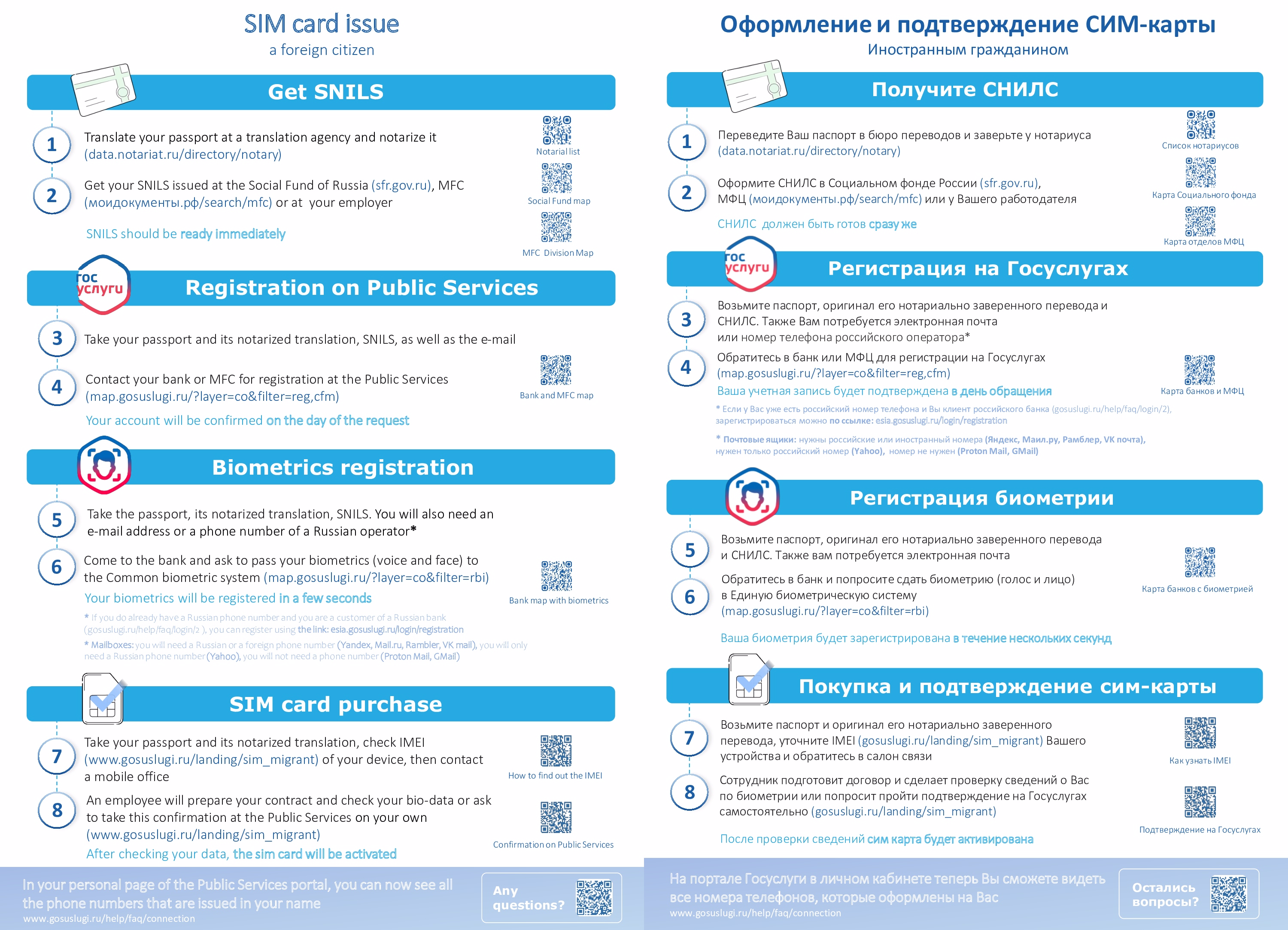 В соответствии с частью 1 статьи 45 Закона № 126-ФЗ в редакции Закона № 303-ФЗ с 1 января 2025 г. заключение договора об оказании услуг подвижной радиотелефонной связи с иностранным гражданином или лицом без гражданства будет осуществляться при предъявлении документа, удостоверяющего его личность, и при условии подтверждения достоверности сведений о лице посредством единой системы идентификации и аутентификации и единой биометрической системы.