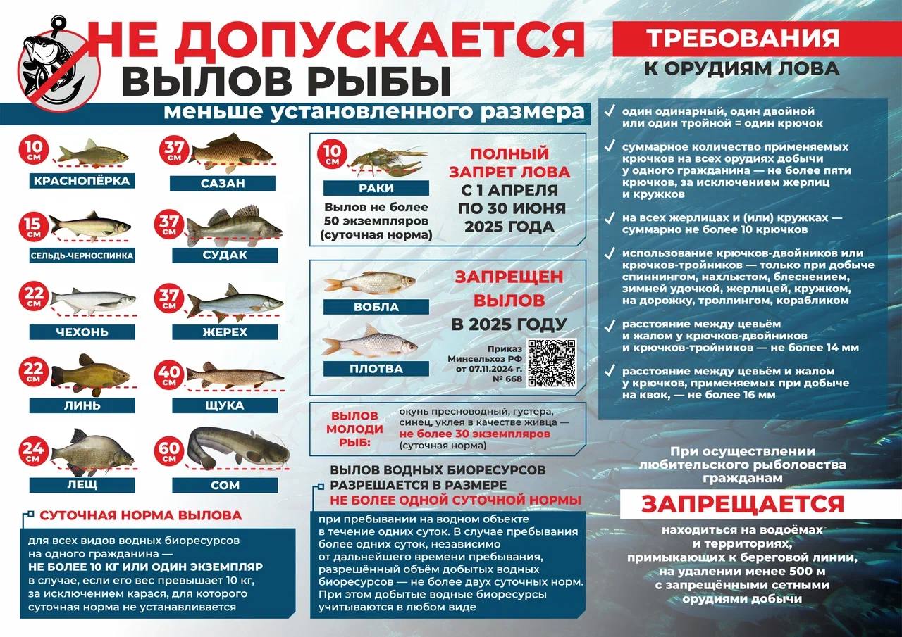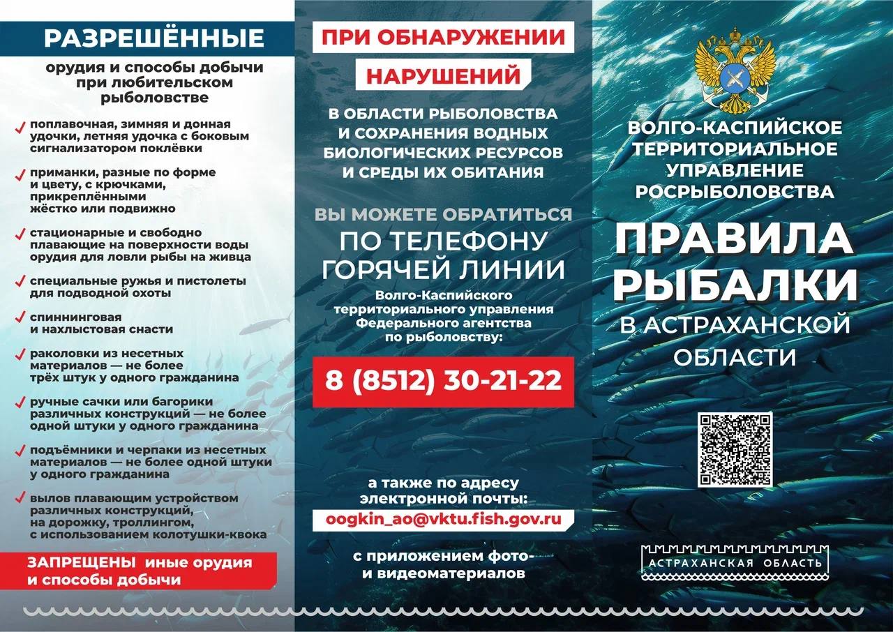 Во исполнение протокола совещания у Губернатора Астраханской области Бабушкина И.Ю. № ИЮ-10 от 28.03.2025, и в целях освещения информации о запретах и ограничениях на вылов водных биологических ресурсов при осуществлении любительской рыбалки в Астраханской области разработана памятка «Правила рыбалки в Астраханской области», разработанная в соответствии с приказом Министерства сельского хозяйства Российской Федерации от 07.11.2024 № 668 «Об установлении ограничений промышленного и любительского рыболовства в отношении отдельных видов водных биологических ресурсов в водных объектах Волжско-Каспийского рыбохозяйственного бассейна в 2025 году».