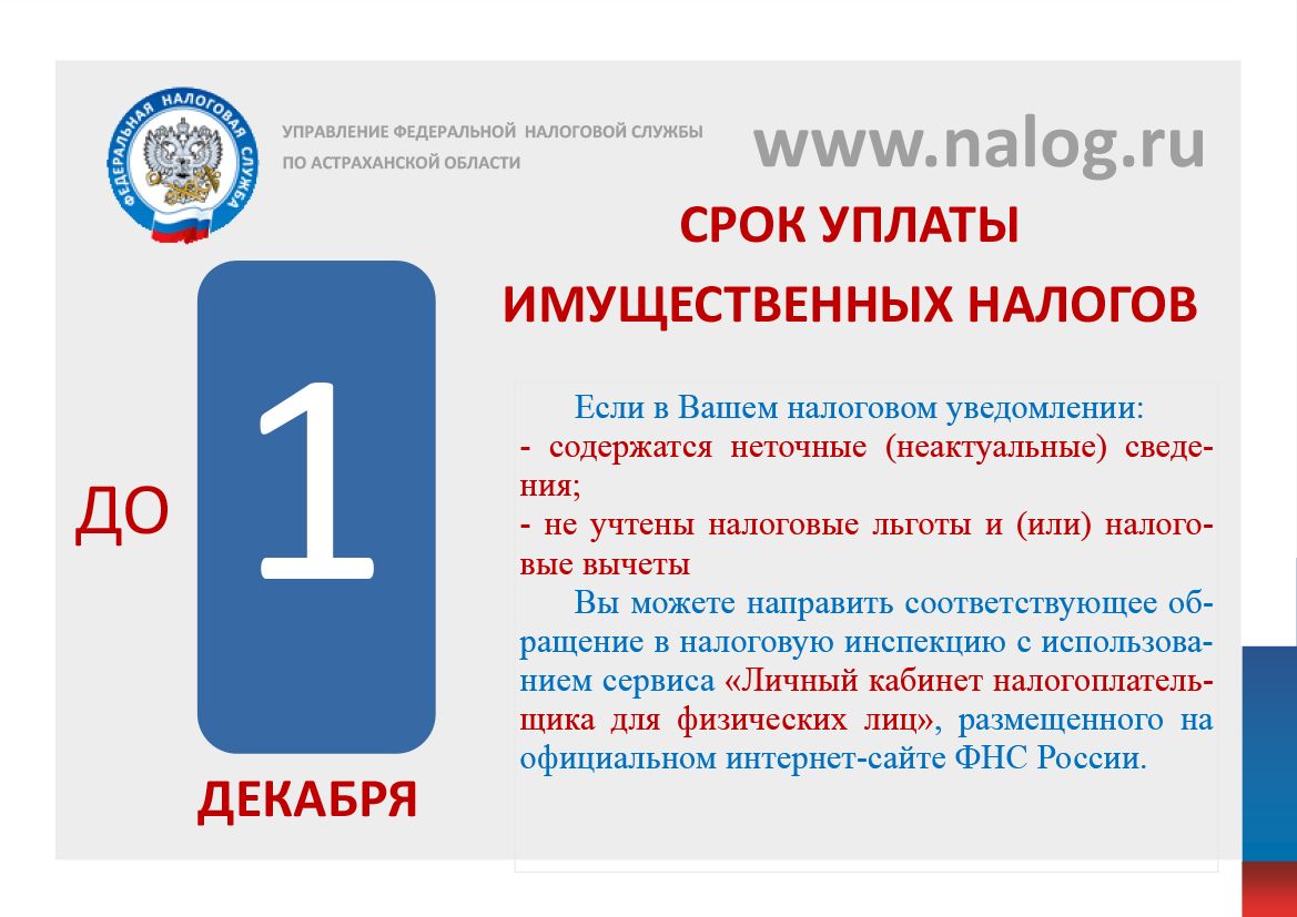 Управление ФНС России по Астраханской области приступило к рассылке налоговых уведомлений по имущественным налогам за 2016 год. В отдельных случаях по техническим причинам ошибочно проведено повторное начисление имущественных налогов за 2014-2015 годы. Если начисленные суммы Вами уплачены, то по прилагаемым квитанциям уплату следует произвести только за 2016 год.