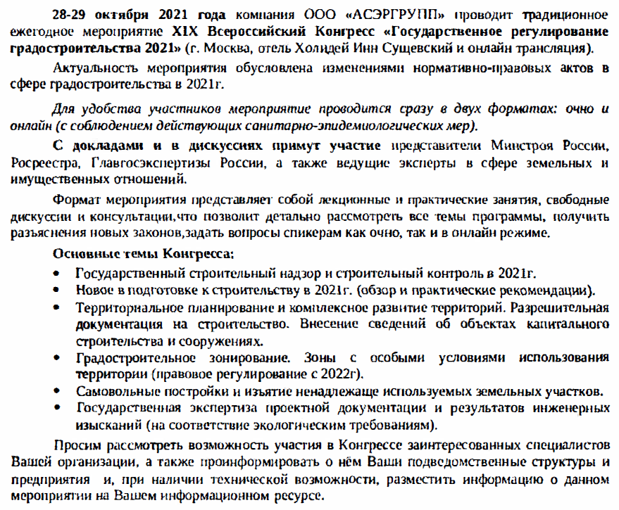 Программа XIX Всероссийского Конгресса «Государственное регулирование градостроительства 2021»