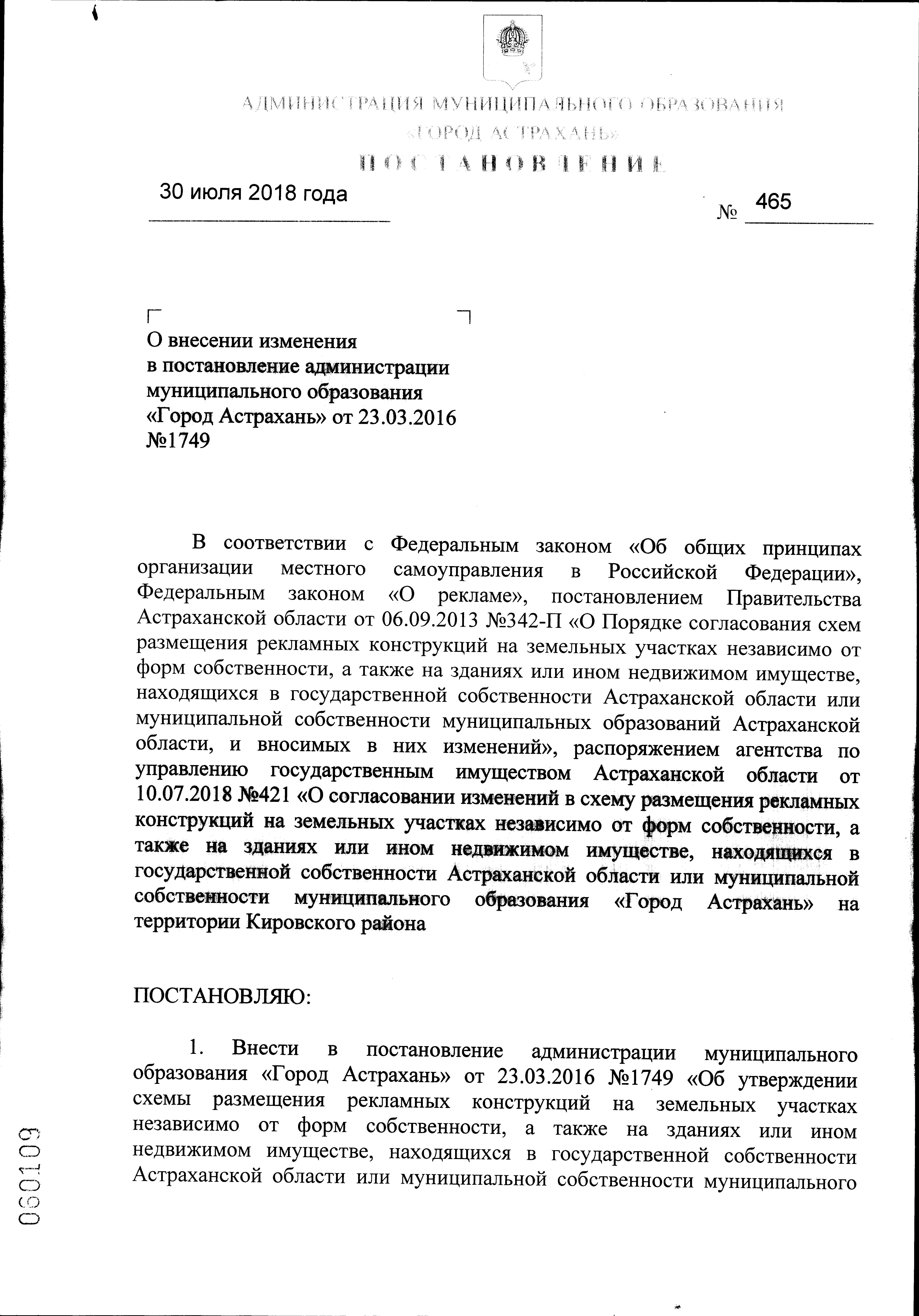 Распоряжения Главы МО "Городской округ город Астрахань"