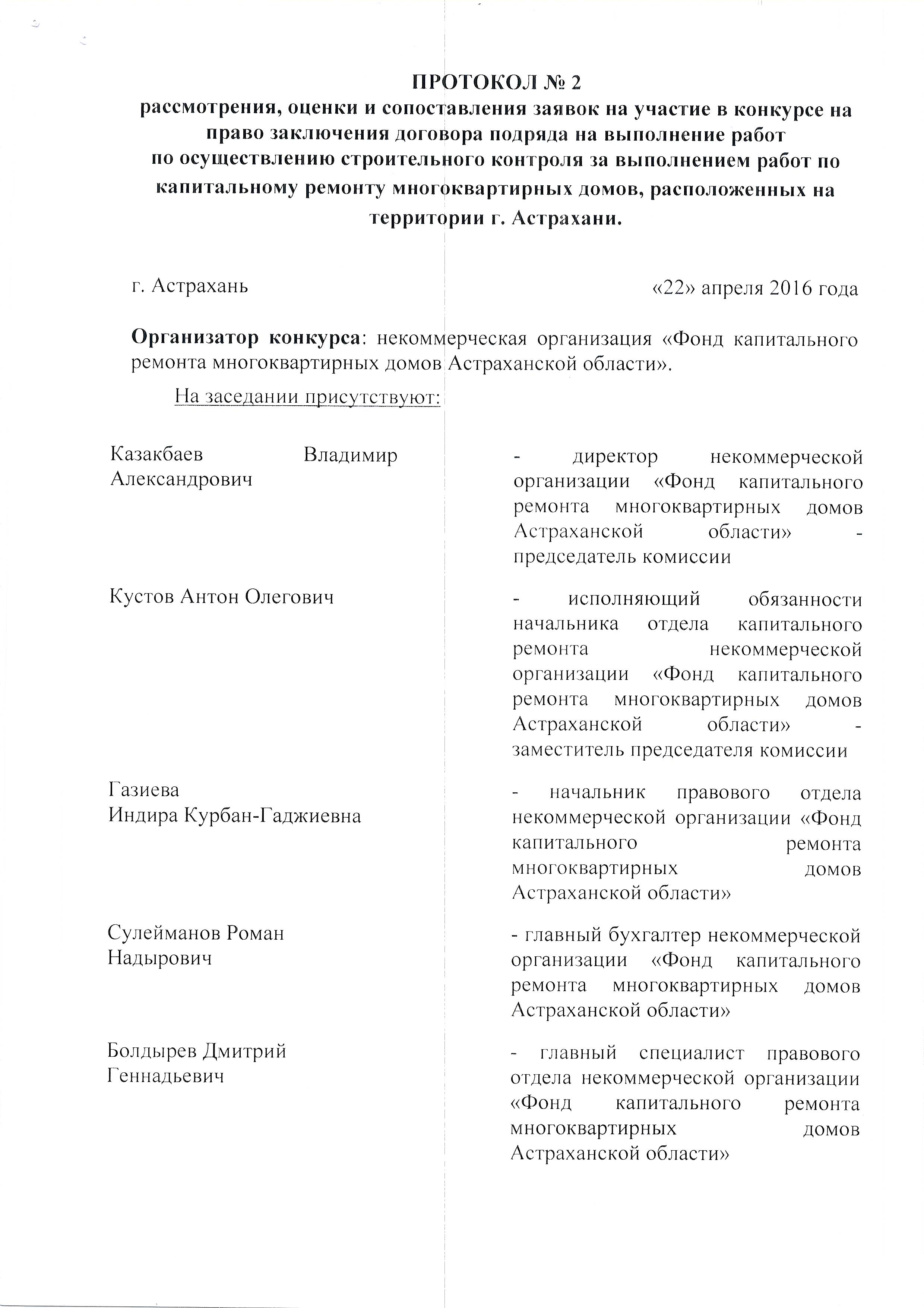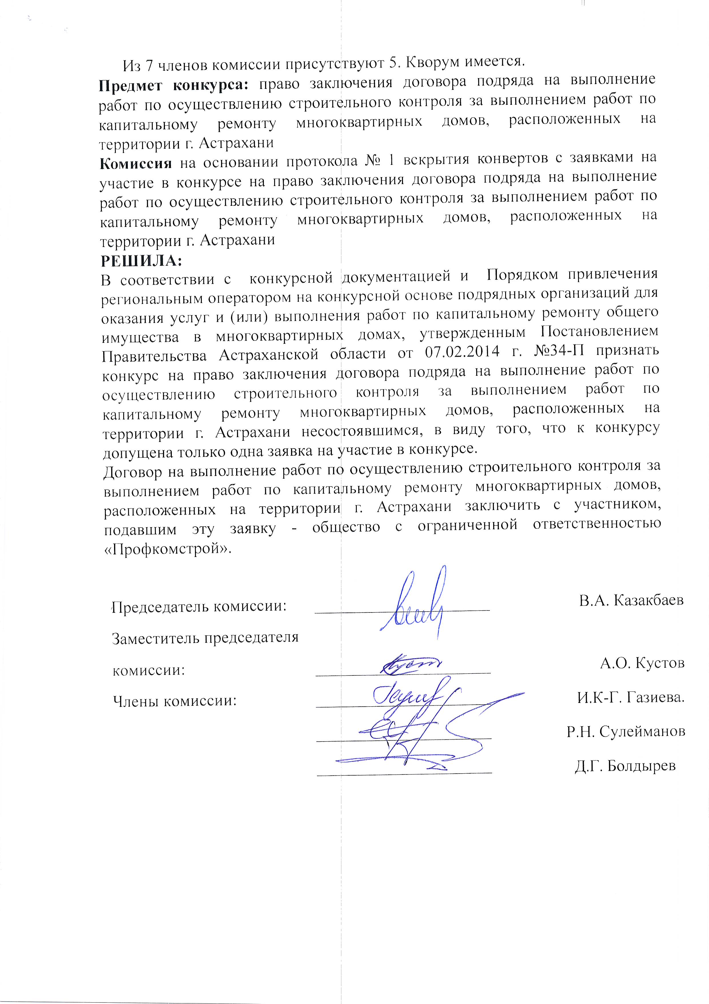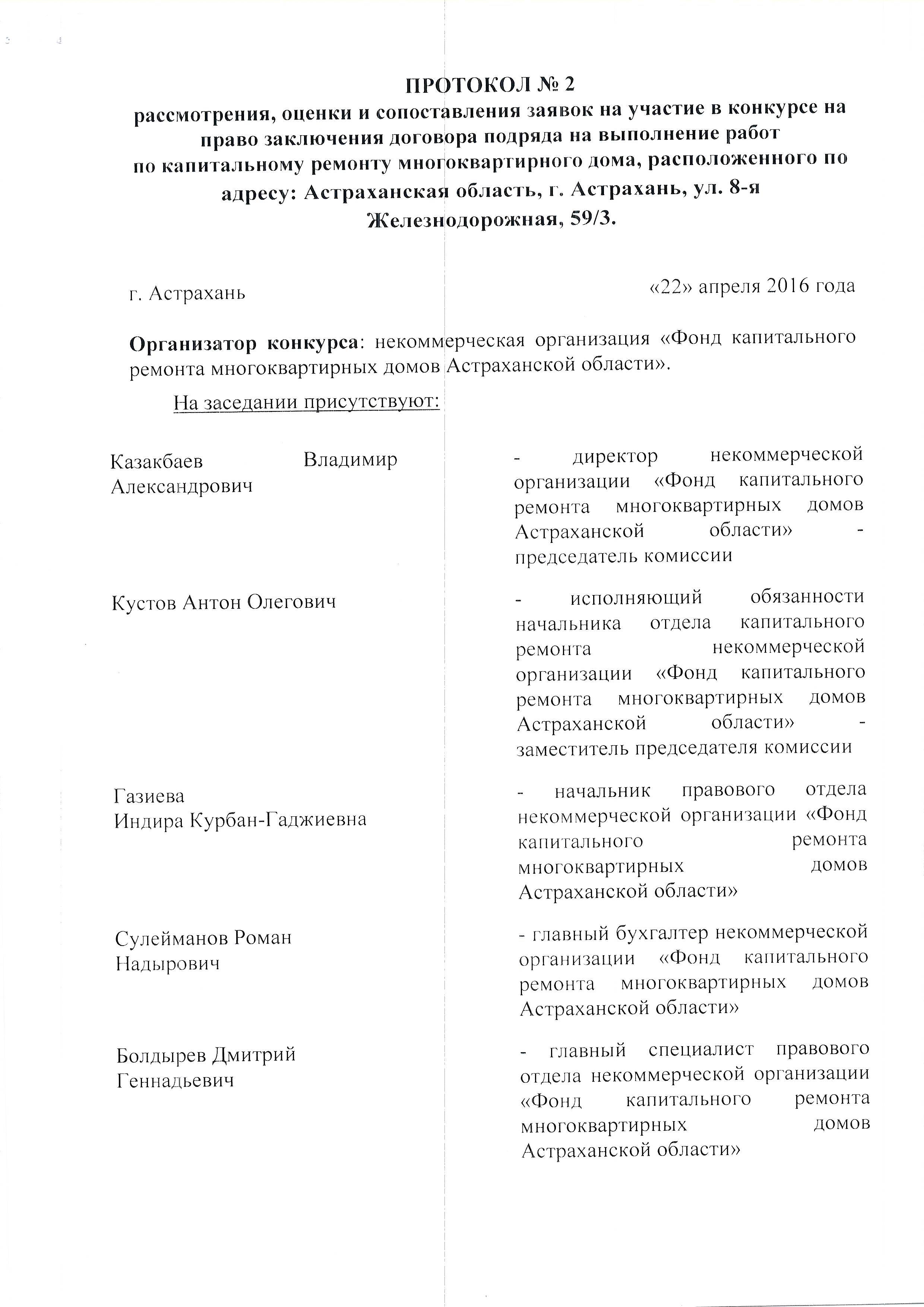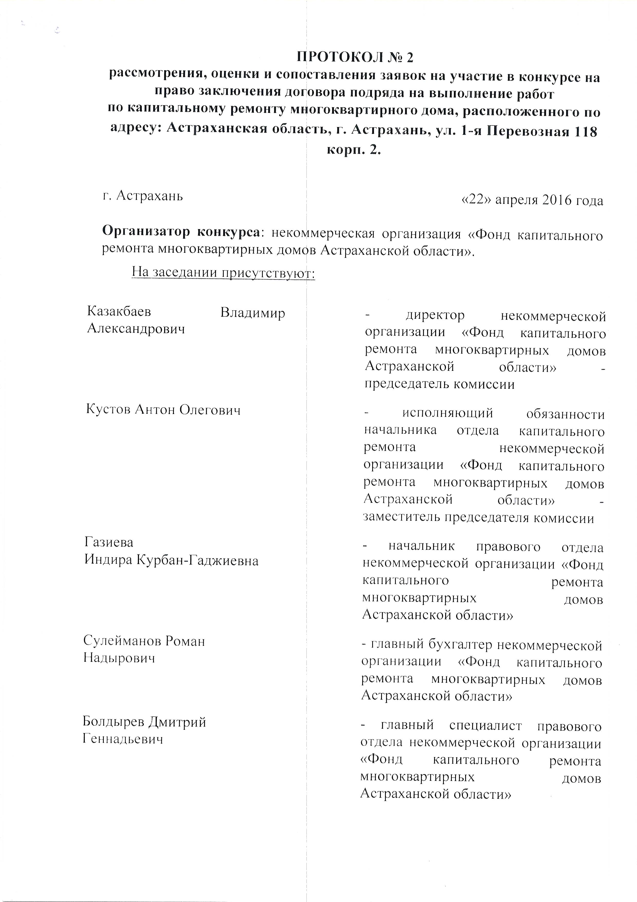 Результаты конкурса на отбор подрядных организаций для выполнения работ по капитальному ремонту многоквартирных домов Астраханской области.