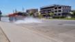 Специалисты муниципального предприятия, подведомственного городскому управлению по коммунальному хозяйству и благоустройству, охлаждают проезжие части улиц, поливая асфальт водой. Работы проводят в связи с установившейся сильной жарой.
