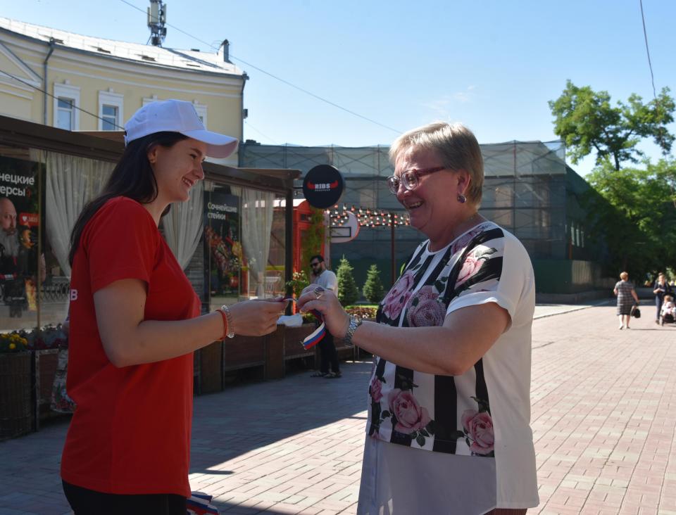 В преддверии празднования Дня России городские власти проводят акцию «Триколор». Сегодня с раннего утра сотрудники администрации Астрахани совместно с волонтерами раздают ленточки с «триколором» на центральных улицах и в парках. Волонтеры рассказывают астраханцам о грядущем празднике и поздравляют.