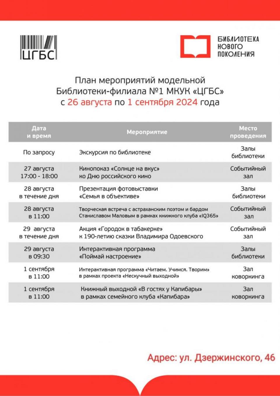 Так, к примеру, на этой неделе в модельной библиотеке по ул. Шаумяна, 87/8 пройдет заседание клуба «Нотки поэзии», интеллектуальных игр, клуба разговорного английского и тематический квиз ко Дню российского кино. Не менее насыщенной программа будет и в аналогичном учреждении в Трусовском районе. В библиотеке на ул. Дзержинского, 46 1 сентября для детей будет подготовлен интерактив «Читаем. Учимся. Творим», а также будут организованы мероприятия в рамках семейного клуба «Капибара». Подробная программа в карточках.