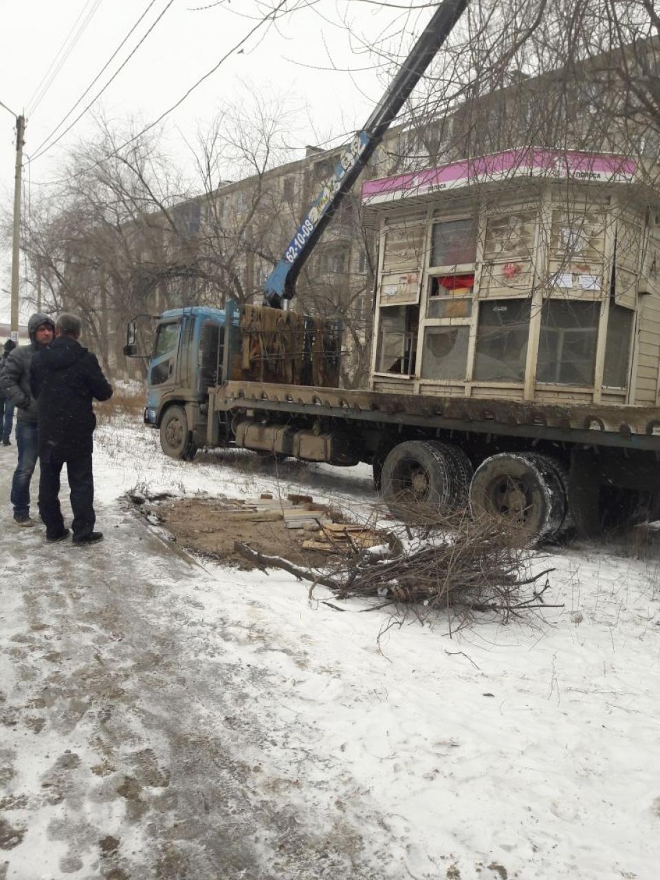 Сотрудниками районной администрации проведена необходимая работа с собственником объекта. 26.01.2018 торговый объект был демонтирован и вывезен.