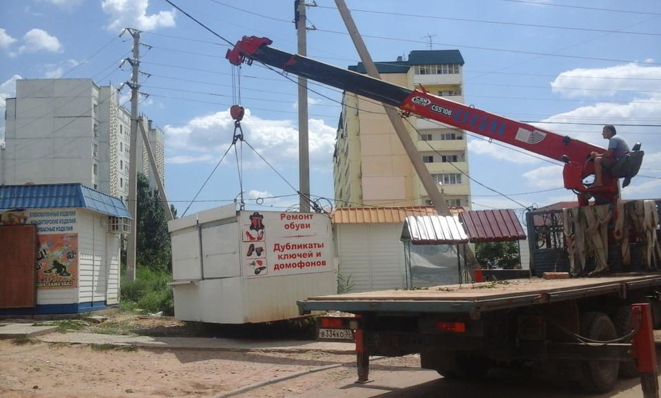 Во исполнение постановления администрации МО «Город Астрахань» №2838 от 25.04.2016 «Об освобождении земельных участков, используемых без оформленных в установленном порядке правоустанавливающих документов на землю от объектов движимого имущества» 12.07.2016 были выполнены работы по демонтажу торгового объекта (киоска) за счет средств городского бюджета.