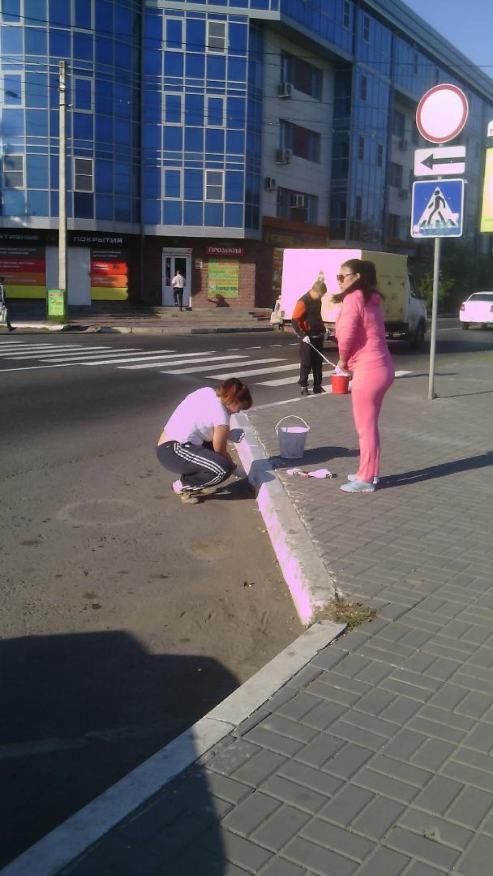14.09.2016 сотрудниками администрации района произведена побелка бордюров по ул. Ак. Королёва, Коммунистической, пл. Покровской.