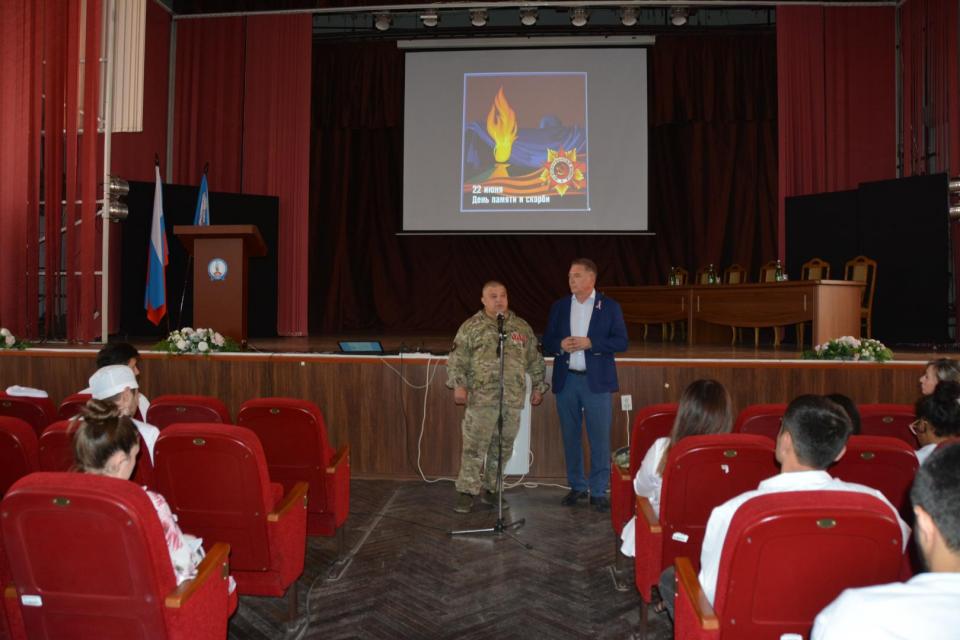 Накануне Дня памяти и скорби в Астраханском медицинском университете была организована встреча студентов с участником специальной военной операции на Украине Александром К. За боевые заслуги он награжден тремя орденами Мужества. Также в мероприятии принял участие ветеран боевых действий, кавалер ордена Красной Звезды, подполковник медицинской службы в запасе Сергей Кодюшев. Организатором встречи выступило управление по связям с общественностью администрации Астрахани.