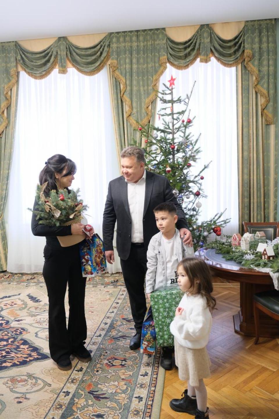 Он вручил подарки двум юным астраханцам: трехлетней Нике и семилетнему Макару. Мама воспитывает их одна.