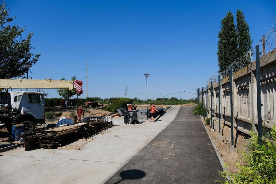 Благоустройство первого этапа, а это территория вдоль забора очистных сооружений «Водоканала» от стадиона на улице Латышева до подъема на набережную близится к завершению. Сейчас рабочие занимаются устройством бордюров, покраской и установкой леерного ограждения, укладкой асфальта на велодорожке. В ближайшие дни здесь начнется укладка плитки и монтаж опор освещения. Ежедневно на объекте трудится около 20 человек. Работы идут динамично, их завершение запланировано на сентябрь. «Уже проделана большая работа. Мы создали зону, приспособленную для прогулок и, что важно, делаем отдельную велосипедную дорожку. Необходимо завершить ремонт в срок», - отметил глава региона Игорь Бабушкин.