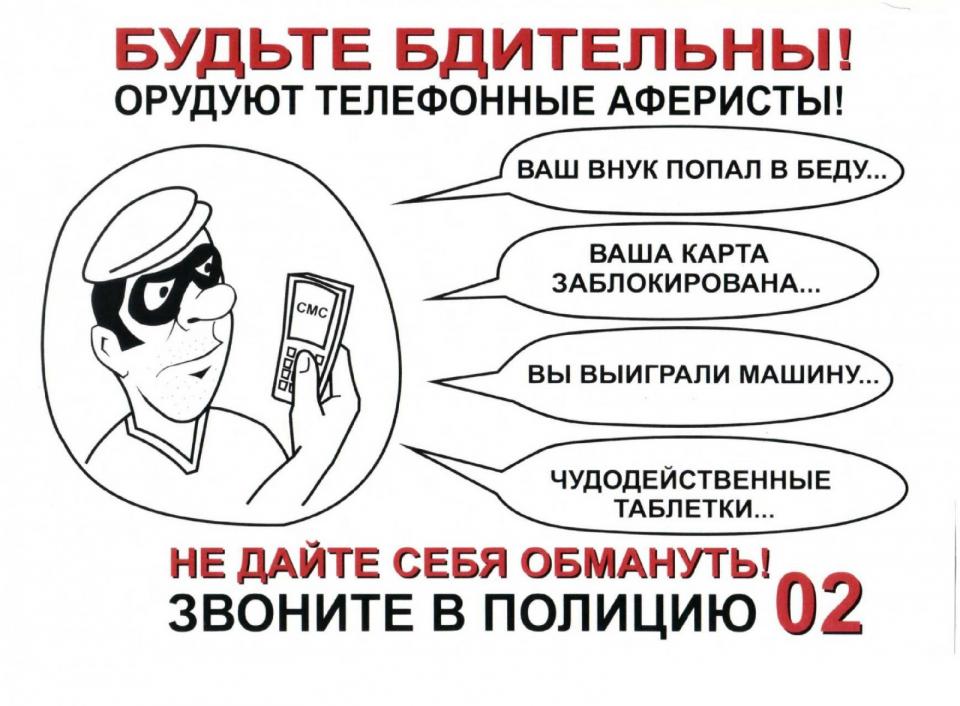 Обо всех подозрительных лицах и звонках незамедлительно сообщайте по тел.: 02, 102, 112.