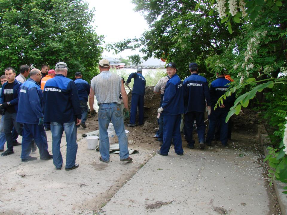 13.05.16 в ходе продолжения мероприятий по берегоукреплению, сотрудниками администрации Ленинского района совместно с сотрудниками МУП г. Астрахани «Астрводоканал» выполнены мероприятия по берегоукреплению по адресу: ул. Соймонова, д. 9.11.