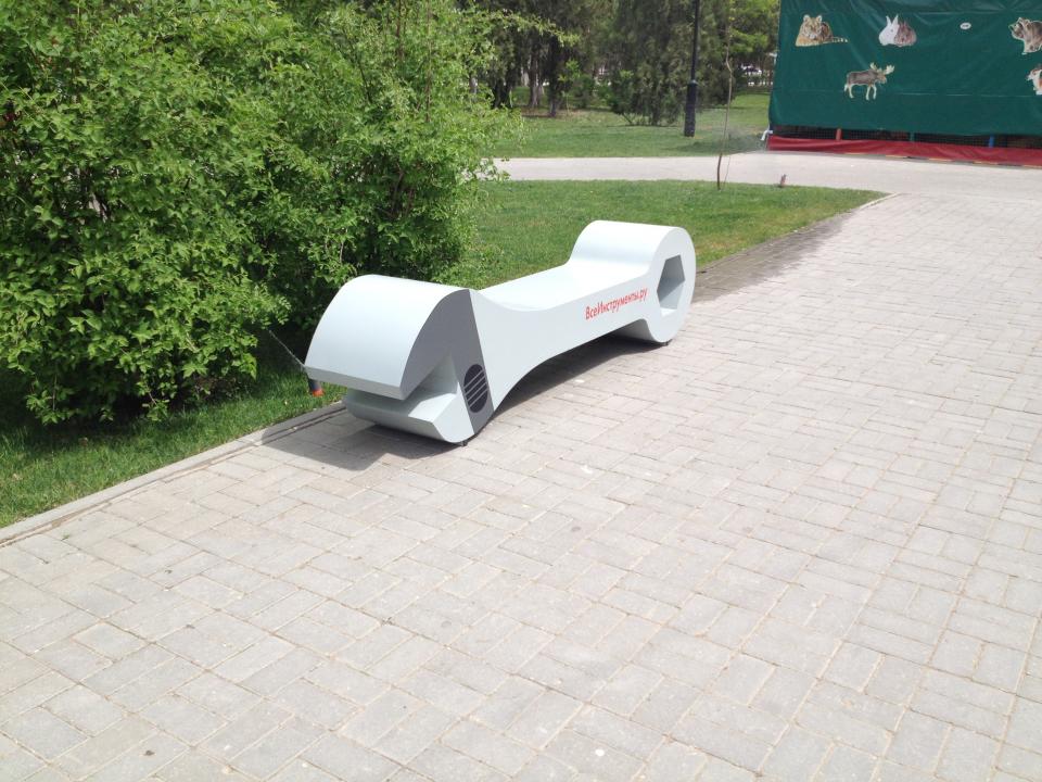 На Бульваре Победы появились две креативные лавочки. Лавочки представлены в виде гаечного ключа. Такой подарок городу сделала компания «Все инструменты. Ру».