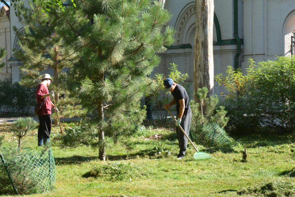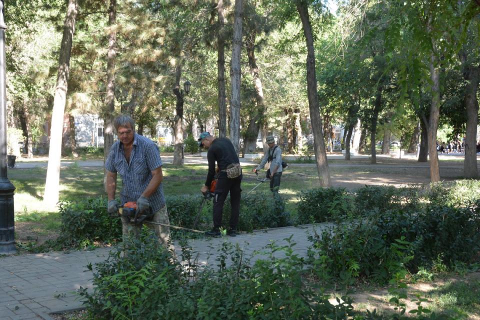 Работы по уходу за зелеными насаждениями на днях прошли в Морском саду. Там также подстригли кустарники и подровняли газон.