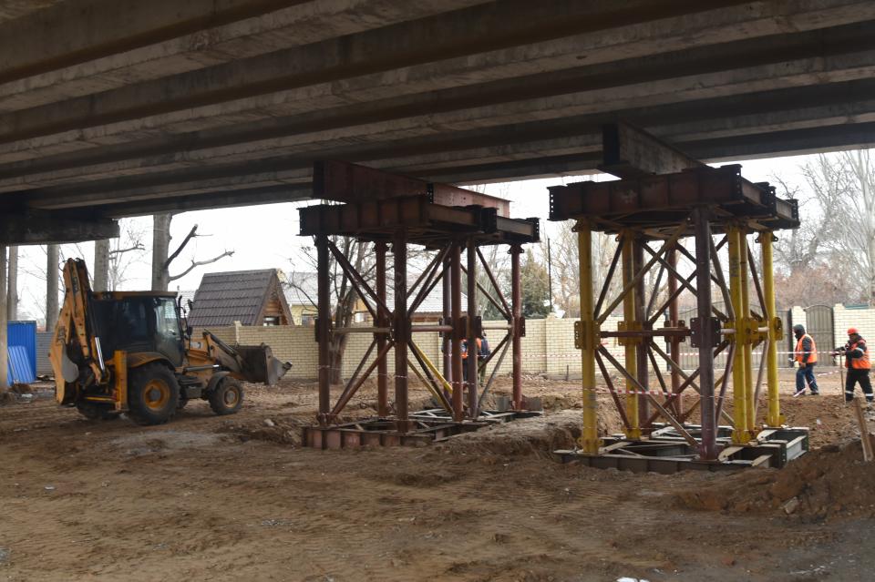 На мосту через реку Царев в створе улицы Боевой специалисты готовятся ко второму этапу работ – усилению балок шестого пролета сооружения. Ранее по поручению главы региона Игоря Бабушкина под мостом установлены страховочные опоры, что позволяет организовать движение автотранспорта по всем четырем полосам проезжей части моста.