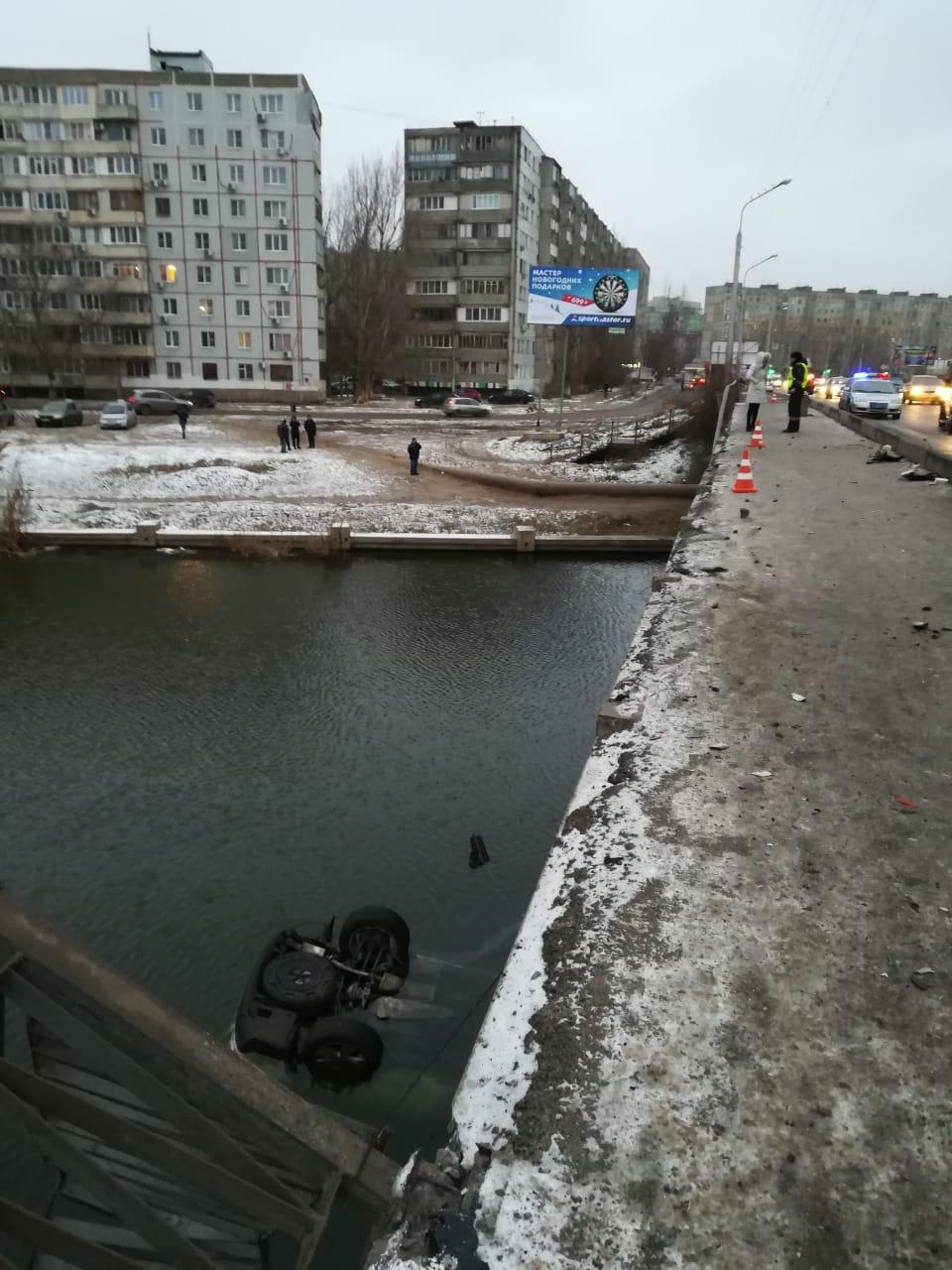 Сегодня около 6 утра на мосту через Кутум по ул. Студенческой автомобиль «Тойота» протаранил ограждение и упал в воду. В результате выломанными оказались 9 секций пешеходной части моста, общая длина которых порядка 20 метров.
