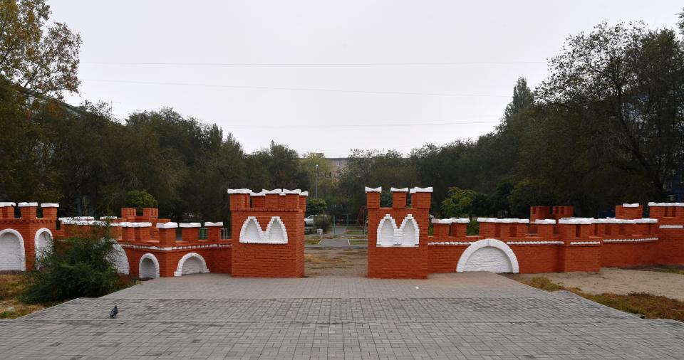 Также выровняли пешеходную часть стены, предназначенную для ребят, восстановили башенки крепости и «шапочки» на них. Поставили урны.