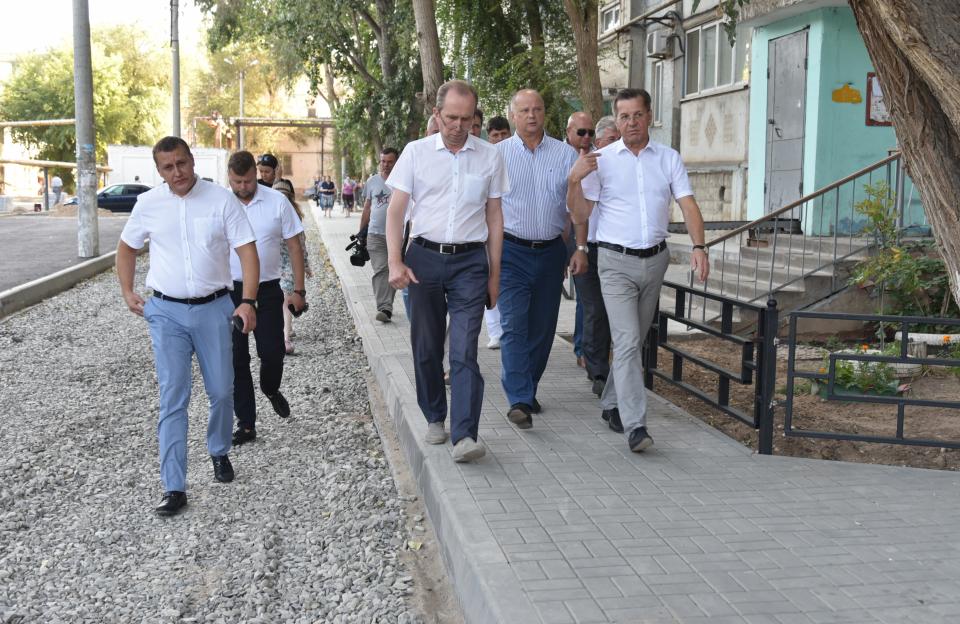 Губернатор Астраханской области Александр Жилкин и глава администрации города Олег Полумордвинов провели выездное совещание на ремонтирующейся дворовой территории на улице Адмирала Нахимова, 125. Двор вошел в федеральный проект «Формирование комфортной городской среды».