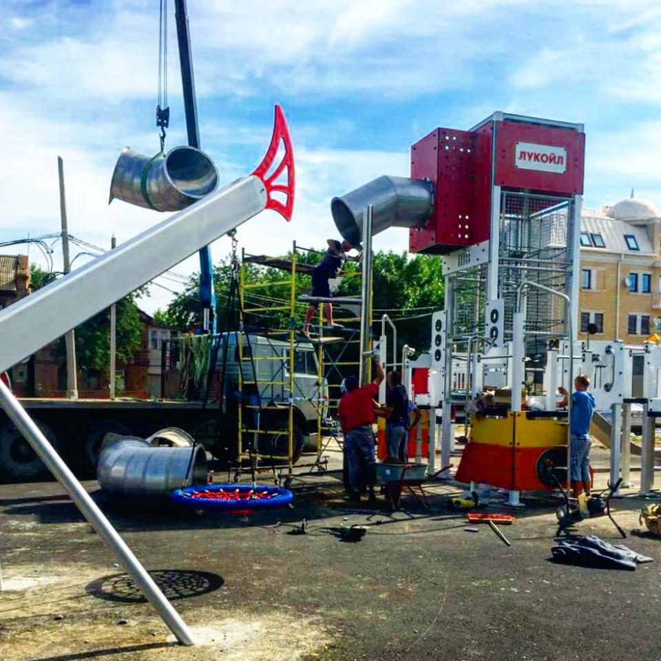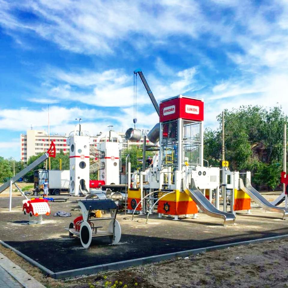 ПАО "Лукойл" и благотворительный фонд социальной поддержки и защиты населения "Созидание" в рамках реализации проекта по благоустройству приступил к установке игрового комплекса в виде нефтяной буровой.