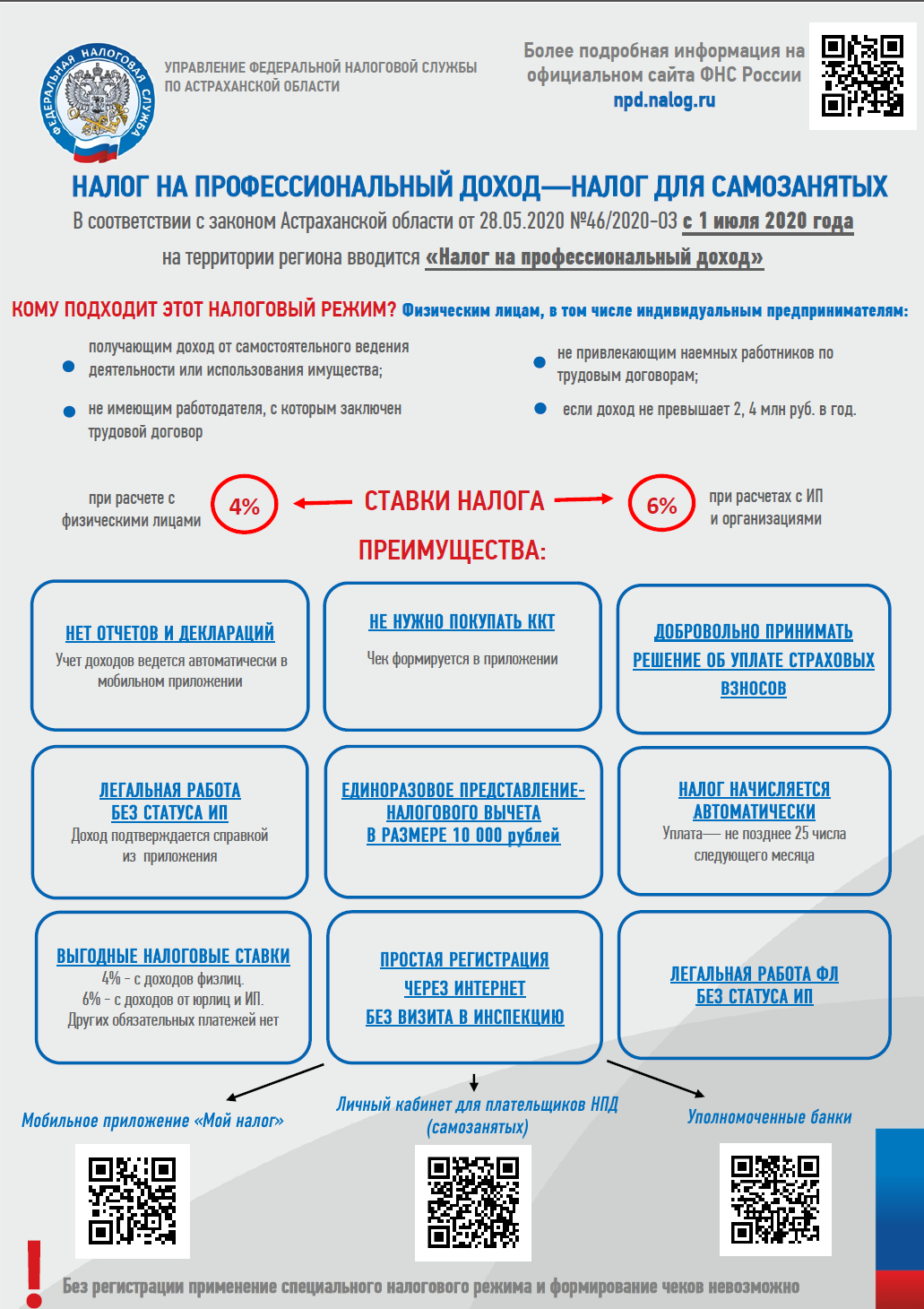 Информируем Вас о введении с 1 июля 2020 года на территории региона нового специального налогового режима "Налог на профессиональный доход" для самозанятого населения.