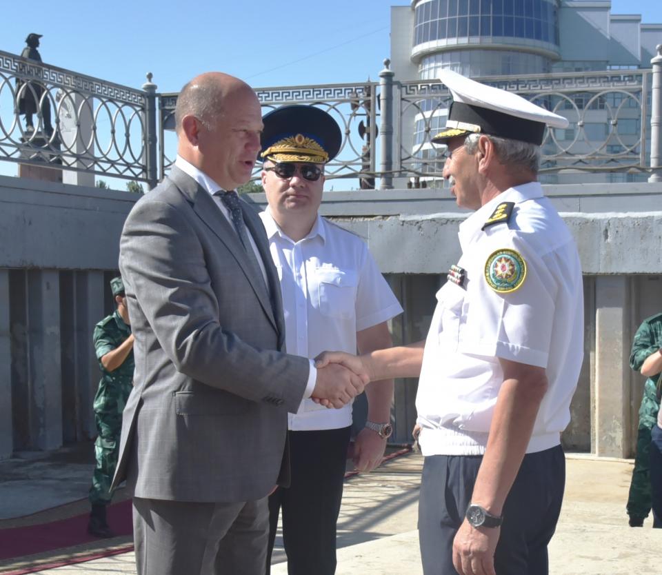Сегодня в Астрахани на набережной в районе памятника Петру I пришвартовался пограничный корабль Государственной пограничной службы Азербайджанской Республики. Гостей встречали их астраханские коллеги и глава городской администрации Олег Полумордвинов.