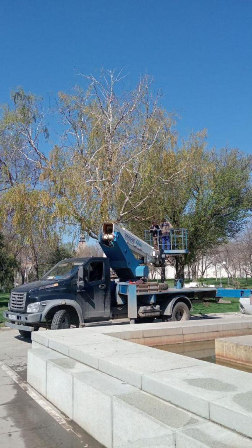 В зеленой зоне площади проводится опиловка деревьев, уборка случайного мусора. Также продолжаются работы на комплексе фонтанов. Здесь монтируют регулировочные задвижки, производят ревизию форсунок, моют чаши фонтанов. В ближайшее время на площади начнут разбивать клумбы, а после 20 апреля планируется высадка цветов.