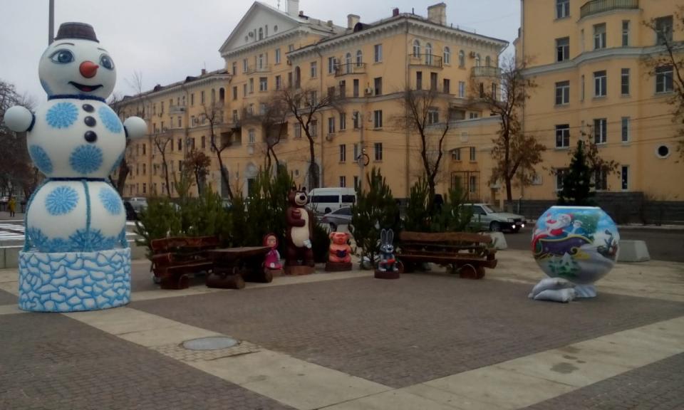 По поручению главы администрации Астрахани Радика Харисова место гуляний у центральной елки дополнительно украсили праздничными элементами. Сегодня на площади Ленина установили новую фотозону, а также ярмарочные киоски для продажи новогодней продукции.