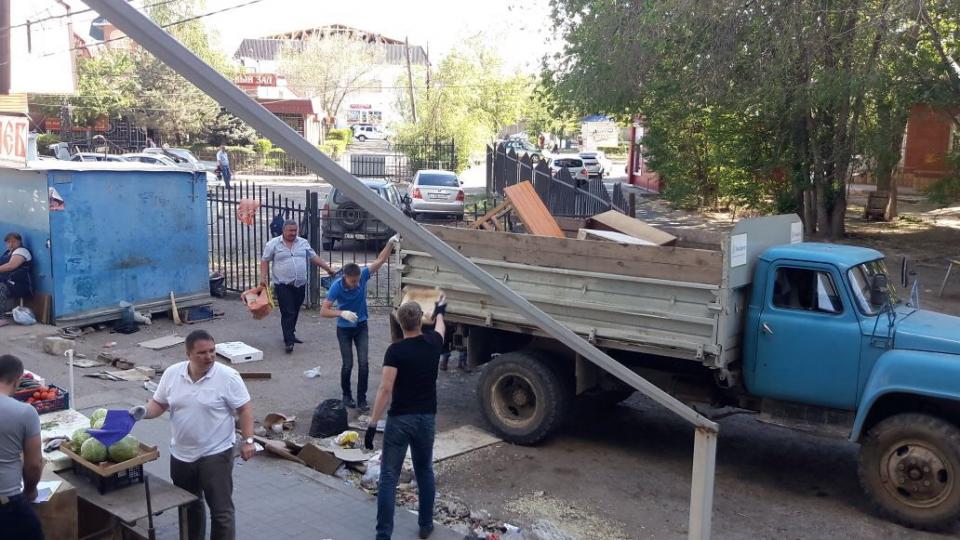14.05.2018 сотрудниками администрации Ленинского района проведены мероприятия по ликвидации несанкционированной торговли в мкр. Бабаевского.
