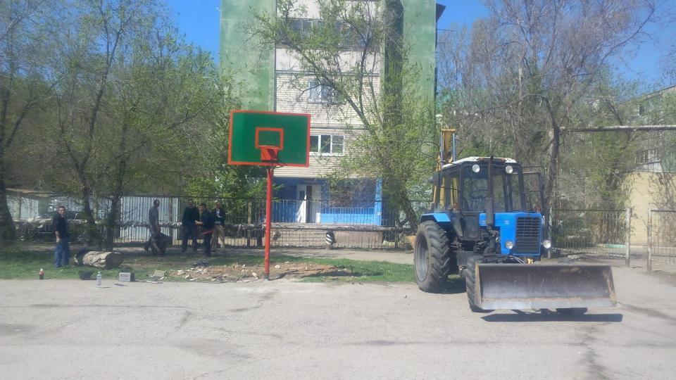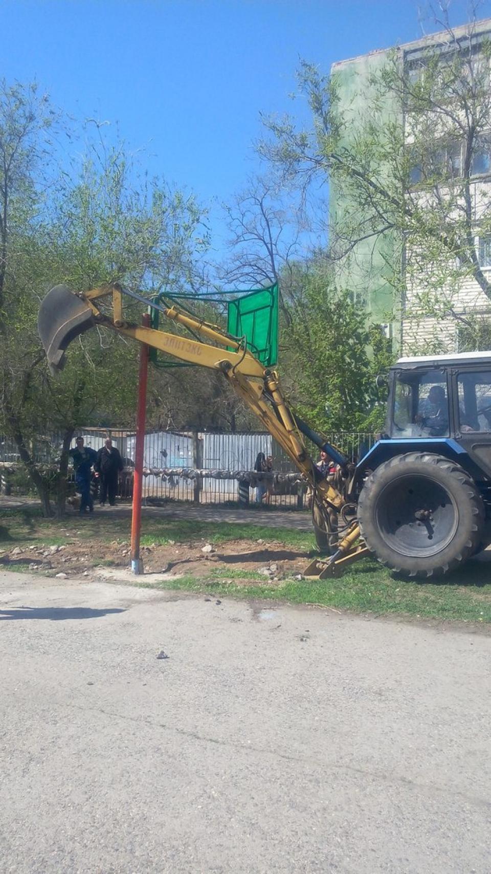 19.04.2016 производились работы по ремонту детской игровой площадки по адресу: ул. Савушкина, 50 силами сотрудников администрации Ленинского района и ООО УК «Центр коммунального обслуживания».