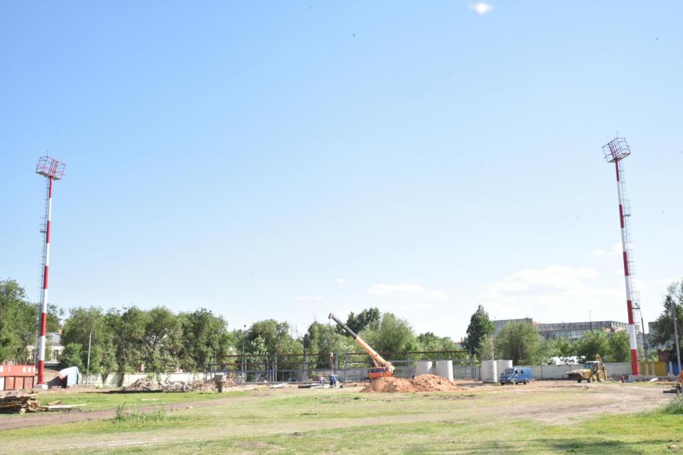 На данный момент здесь произведен демонтаж спортивных сооружений и административного корпуса. Установлены четыре опоры освещения высотой в 30 метров. Ведется обустройство южной и западной трибун на 1500 мест, оборудованных для удобства зрителей козырьками, защищающими от солнца и дождя. Также возводится каркас для административного корпуса, который будет выполнен из сэндвич-панелей. Производится прокладка системы инженерных коммуникаций. Как рассказал руководитель организации-подрядчика Сергей Подгоров, реконструкция проходит в соответствии с графиком. После завершения черновых строительных работ начнется обустройство игрового поля и укладка газона. Для поддержания натурального травяного покрытия будет обустроен дренаж и поливочный водопровод.