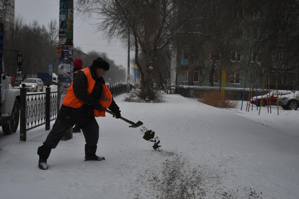 Проводится и подсыпка пескосоляной смесью участков дорог, покрытых наледью. Особое внимание мостам, перекресткам, тротуарам.