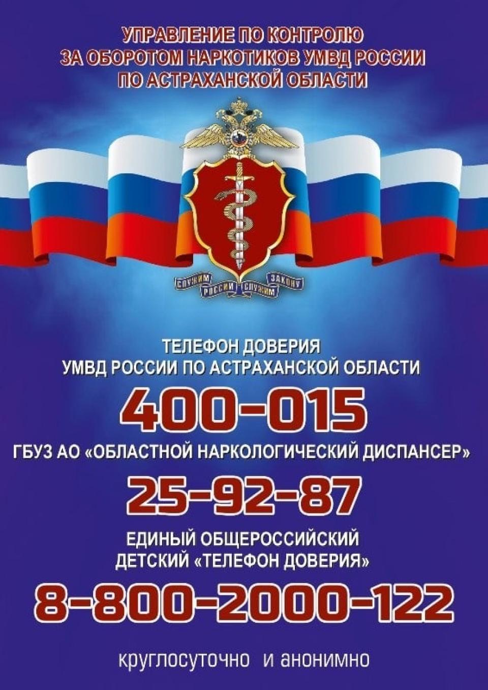 В рамках проведения на территории Астраханской области Общероссийской акции «Сообщи, где торгуют смертью», управление по контролю за оборотом наркотиков УМВД России по Астраханской области информирует о работе «телефона доверия».