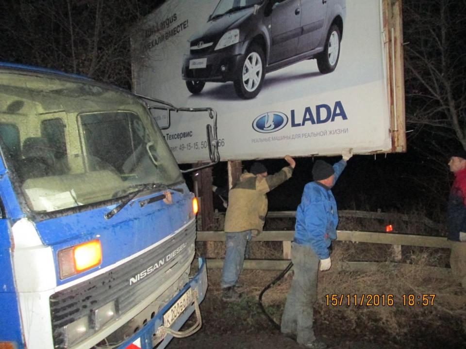 - демонтаж рекламных конструкций 3*6 по ул. Летвийская, 34; Бабаевского(пост ДПС); Соколова; Победы; Яблочкова(въезд на мост); Староверова; Краматорская,190; Автозаправочная;