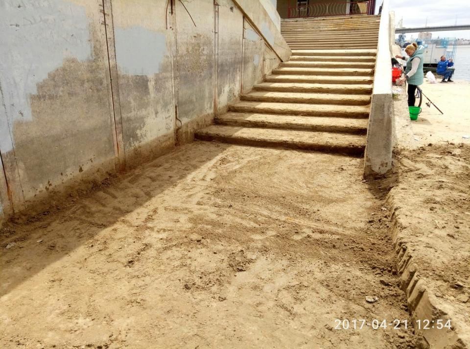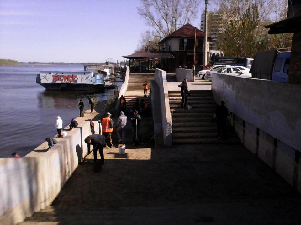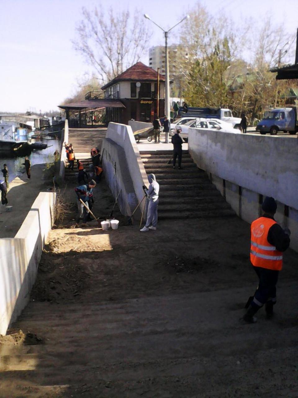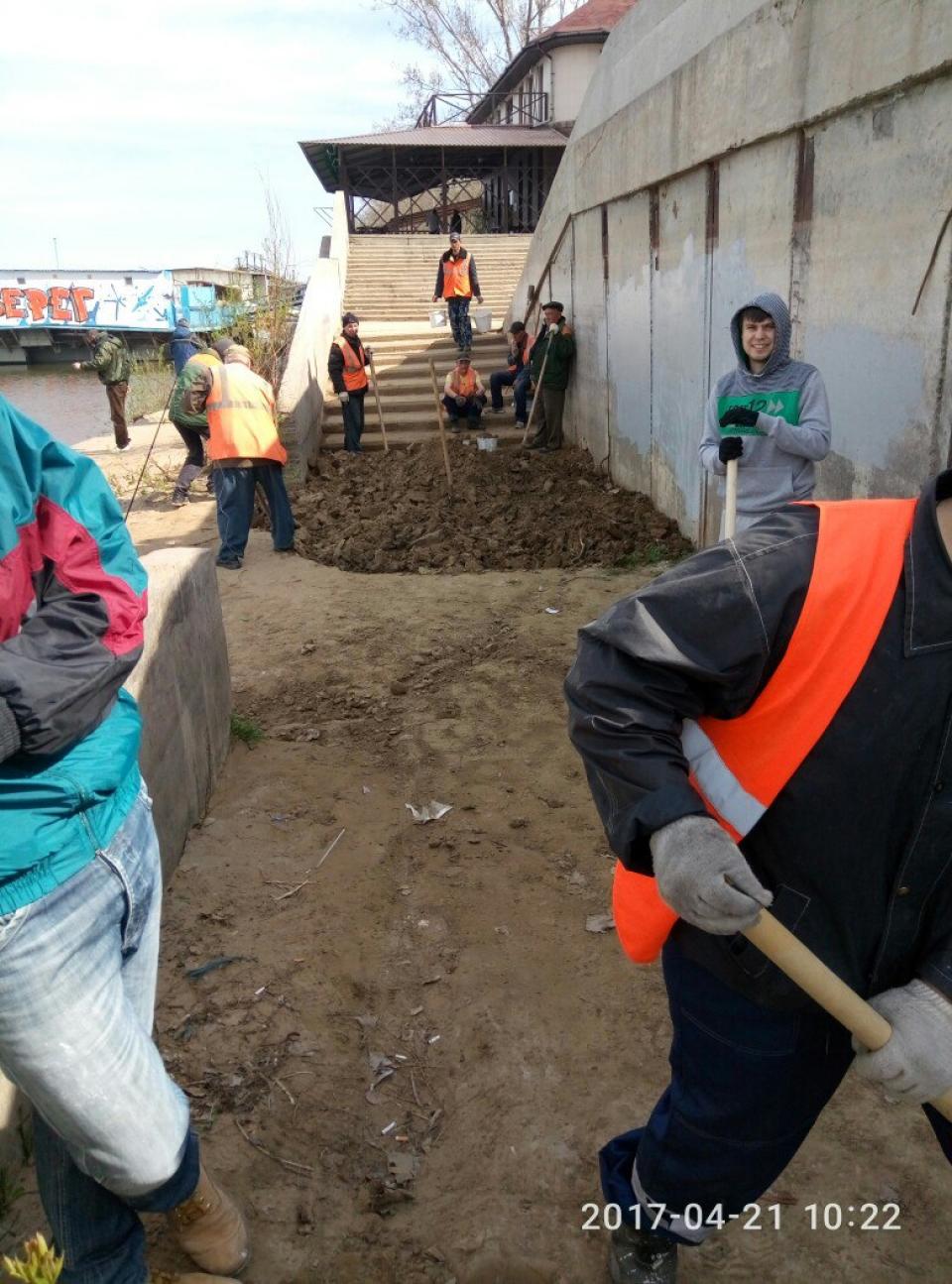 22.04.2017 администрация района совместно с МБУ г. Астрахани "Мосты и каналы" и МБУ г. Астрахани "Чистый город" провели очередной субботник в рамках программы «День чистоты». по зачистке от скопившегося мусора и намытого грунта на спуске к реке Волга в районе кафе «Берег» по ул. Куйбышева.