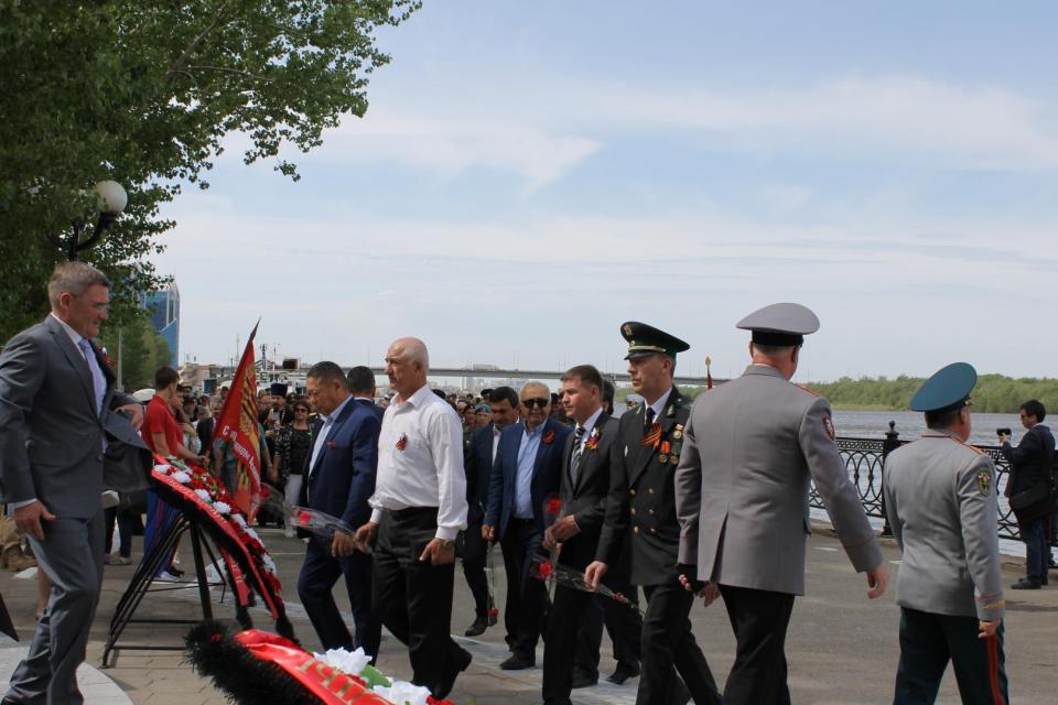 Глава региона совместно с представителями органов власти, общественных организаций, астраханской молодёжи, казачества, военнослужащими Астраханского военного гарнизона и Каспийской флотилии, посетил мемориальный комплекс «В память о героях Великой Отечественной» на бульваре Победы, памятному знаку «В память о погибших кораблях в 1942 году» на Комсомольской Набережной. Процессию встречали спортсмены ЦСКА г. Астрахань и ученики МБОУ г. Астрахани "Гимназия №1", создав живой коридор к памятникам воинской славы.