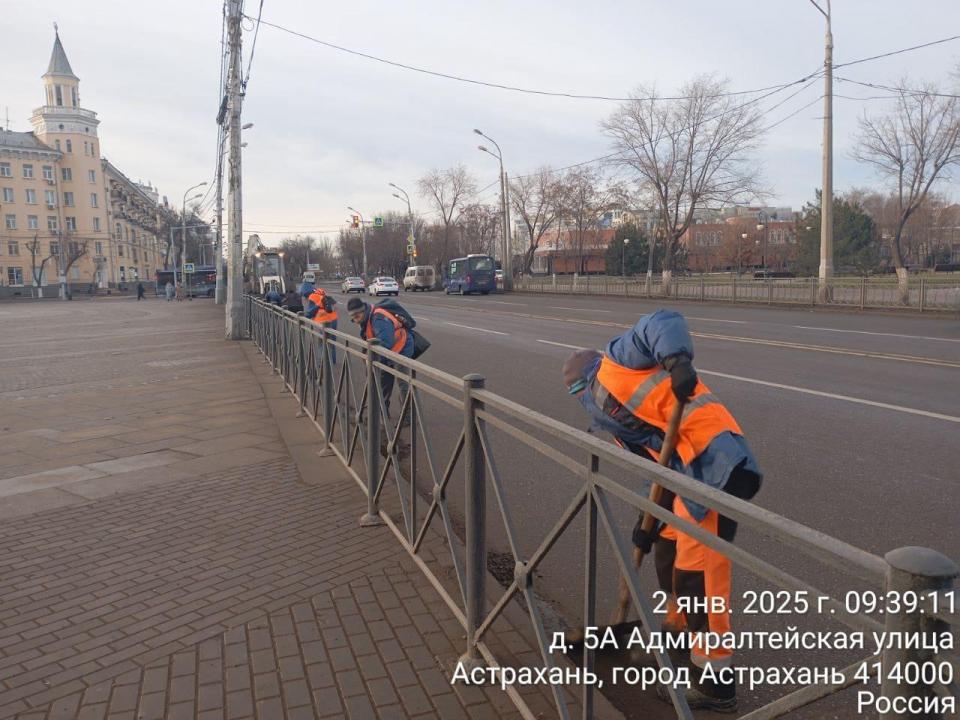Городские коммунальные службы продолжили уборку мусора в парках и скверах – было вывезено около 3 кубометров мусора с территории общественных пространств Астрахани. Кроме того, в ежедневном режиме продолжается уборка городских мостов от мусора и наносного грунта. В первый день нового года были очищены мосты в створе улицы Боевой, Ивановский, мост Влюбленных.