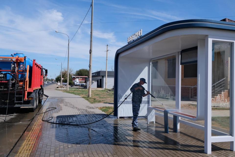 В планах – помывка ограждений и фасадов на центральных улицах города, в числе которых Адмиралтейская, Аэропортовское шоссе и др. Также идут работы по приведению в порядок остановочных комплексов. Сейчас их моют на ул. Адм. Нахимова.