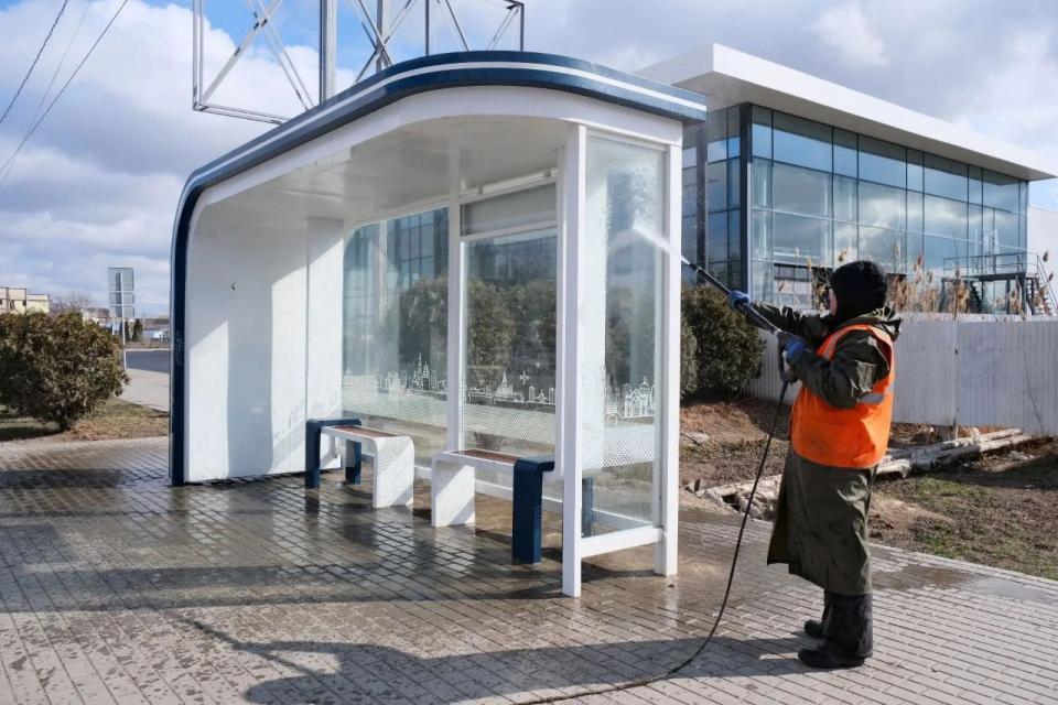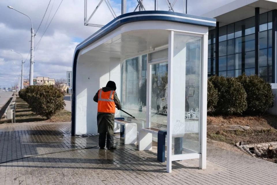 Также сегодня работы по помывке велись и на Аэропортовском шоссе. Здесь сотрудники муниципального предприятия «Чистый город» с помощью аппарата высокого давления очищали от грязи и пыли отбойники по направлению в сторону ул. Боевой. На противоположной части шоссе ограждение и шумовые экраны уже помыли. Кроме того, коммунальщики привели в порядок остановки, расположенные вдоль этой дороги.
