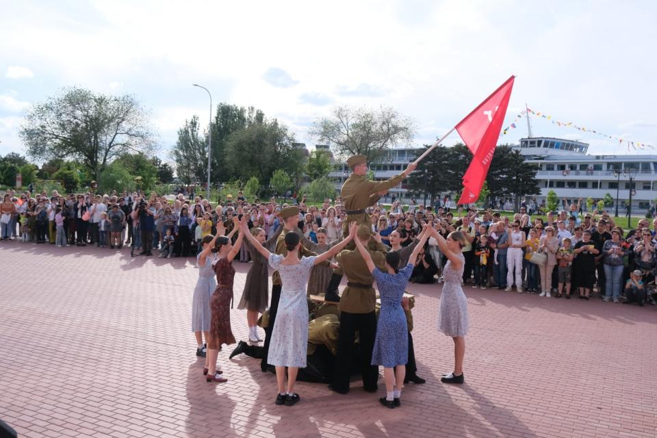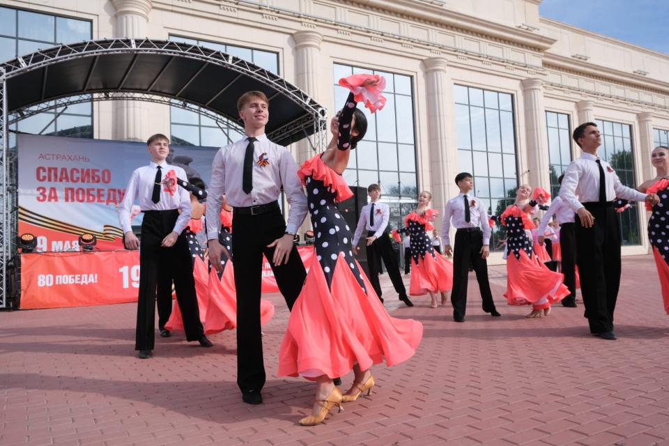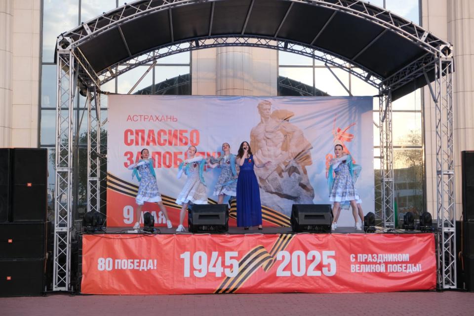 Набережная реки Волги традиционно стала центральной площадкой праздничных народных гуляний в честь Дня Победы в Великой Отечественной войне. С 17:00 здесь заработали различные тематические площадки, организованные администрацией Астрахани. Так, у Молодежного центра "Коса" прошла Всероссийская акция "Вальс Победы". Свыше двухсот воспитаников муниципальных учреждений дополнительного образования выступили с яркими и трогательными номерами. Акция уже в третий раз была проведена в городе. Концерт у молодежного центра шел в режиме нон-стоп весь вечер. После завершения танцевальных номеров на сцену вышли артисты дворца культуры "Аркадия". Они исполнили известные военные песни. Также беспрерывно работала "Точка чтения" рядом с отелем "Азимут". Сотрудники центральной городской библиотеки, астраханские музыканты и актеры читали на набережной стихи поэтов времён Великой Отечественной войны. Стоит отметить, что творческая площадка неизменно привлекает множество зрителей, и специалисты организовывают ее ежегодно не только в День Победы, но и в рамках других событий. Не менее оживлённо было и у памятника Петру Первому. К примеру, здесь каждый желающий мог поучаствовать в мастер-классе по изготовлению коллажа из тематических картинок, насладиться выступлением духового оркестра или посмотреть несколько выставок. В частности, была представлена экспозиция "Астрахань. Командиры трудового фронта. 1941-1945", организованная областным архивом совместно с НКО, краведами и неравнодушными астраханцами, а координатором выступило АРО РСПП при содействии РСПП. Кроме того, астраханские поисковики подготовили выставку, на которой можно было увидеть и поддержать в руках реплики оружия и предметы времён Великой Отечественной войны, , найденные в ходе поисковых раскопок в местах сражений. Кульминацией празднования Дня Победы в Астрахани стал салют.