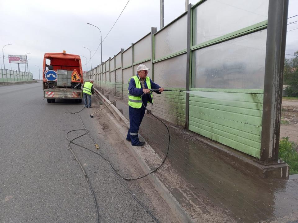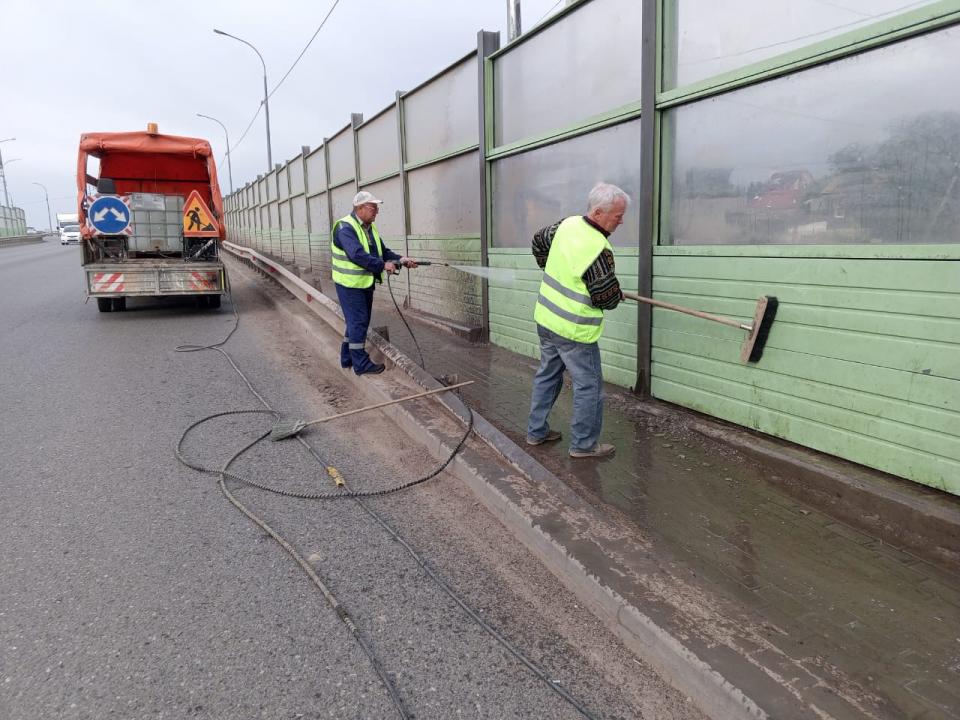 В Астрахани коммунальщики продолжают наводить порядок на улицах города, в том числе работы не приостанавливаются и в выходные дни. Так, специалисты муниципального предприятия "Мосты и каналы" накануне приступили к помывке шумозащитных экранов со стороны пешеходной зоны и отбойного ограждения на мосту Милицейском. Также зачистили проезжую часть от наносного грунта.