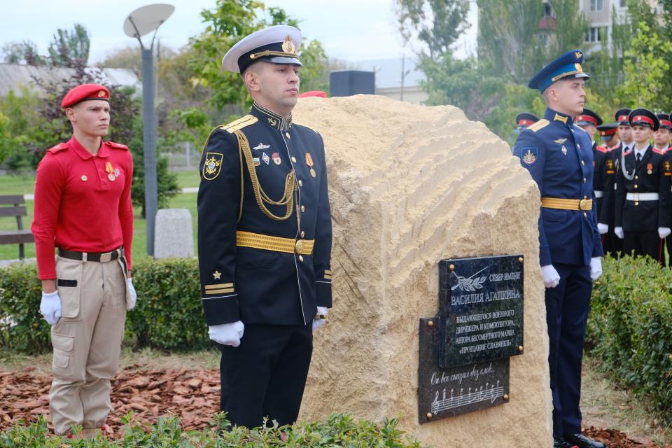 Памятный знак военному дирижеру, композитору и знаменитому астраханцу Василию Ивановичу Агапкину торжественно открыли сегодня в сквере на ул. Яблочкова. Василий Иванович является автором легендарного марша «Прощание славянки».