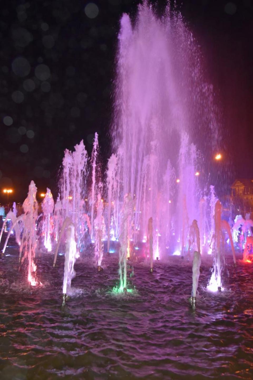 Одним из подарков для горожан на празднике стало свето-музыкальное шоу Петровского фонтана, который в День города с новой силой заиграл яркими красками и мелодиями.