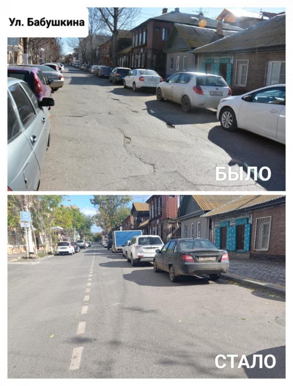 В ходе ремонта специалисты подрядной организации заменили асфальт на проезжей части и установили новые бордюры. Изменения коснулись и пешеходной зоны – взамен старого асфальта здесь выложили цветную плитку, оборудовали пандусы. В завершение работ здесь была нанесена разметка. Несмотря на то, что протяжённость данного участка чуть менее километра, этот объект является значимым в дорожной инфраструктуре центральной части города. Так, улица Бабушкина разгружает транспортный поток, движущийся по Ленина. Кроме того, здесь расположены два социальных объекта – детский сад № 102 и филиал астраханского губернского колледжа.